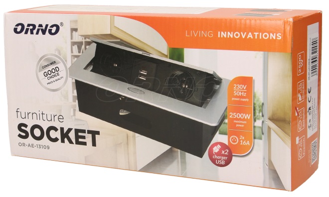 МЕБЕЛЬНАЯ РОЗЕТКА, ВСТРАИВАЕМАЯ В СВЕРХУ, С 2 x 230 В + 2 x USB-ЗАРЯДКОЙ