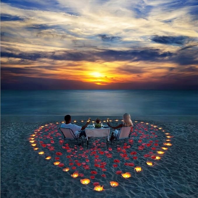✅ Полный набор - 24 светодиодные свечи + 2000 лепестков розовых людей - Готовный рецепт для уникальной атмосферы.