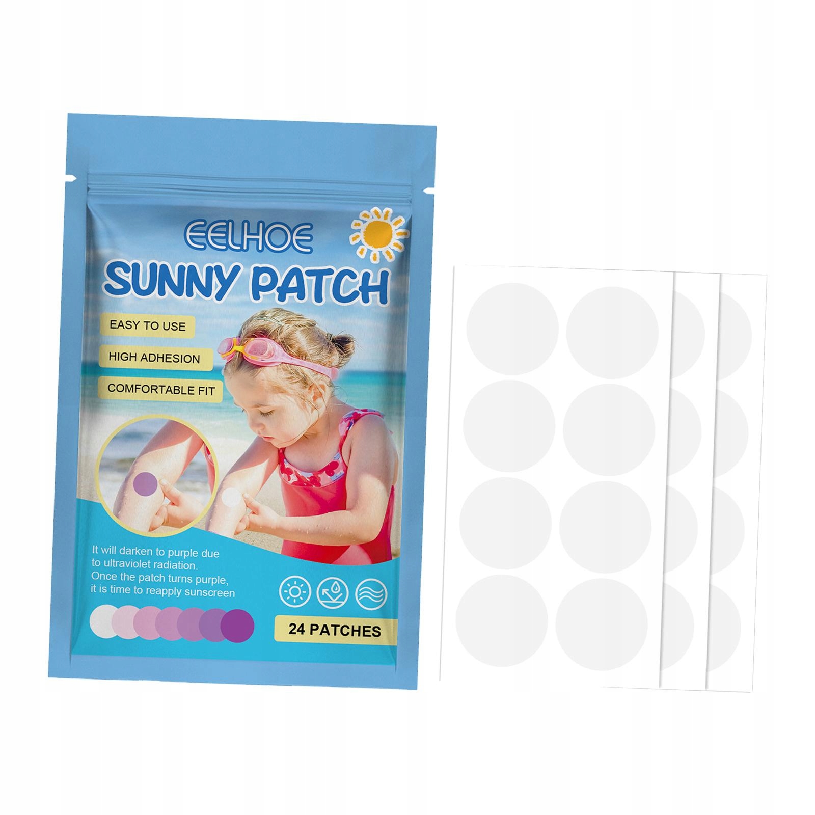 [Как использовать]: Нанесите наклейки с обнаружением кожи, когда патч прозрачен, вы защищены, когда срезает срез, вам нужно снова нанести солнцезащитный крем.