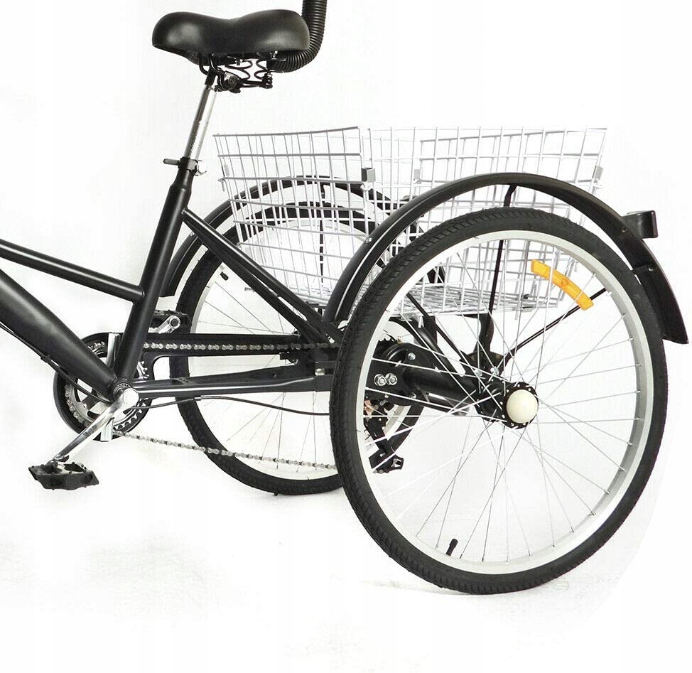 Трехколесный велосипед, 7 скоростей, 24 дюйма, с 2 корзинами - черный