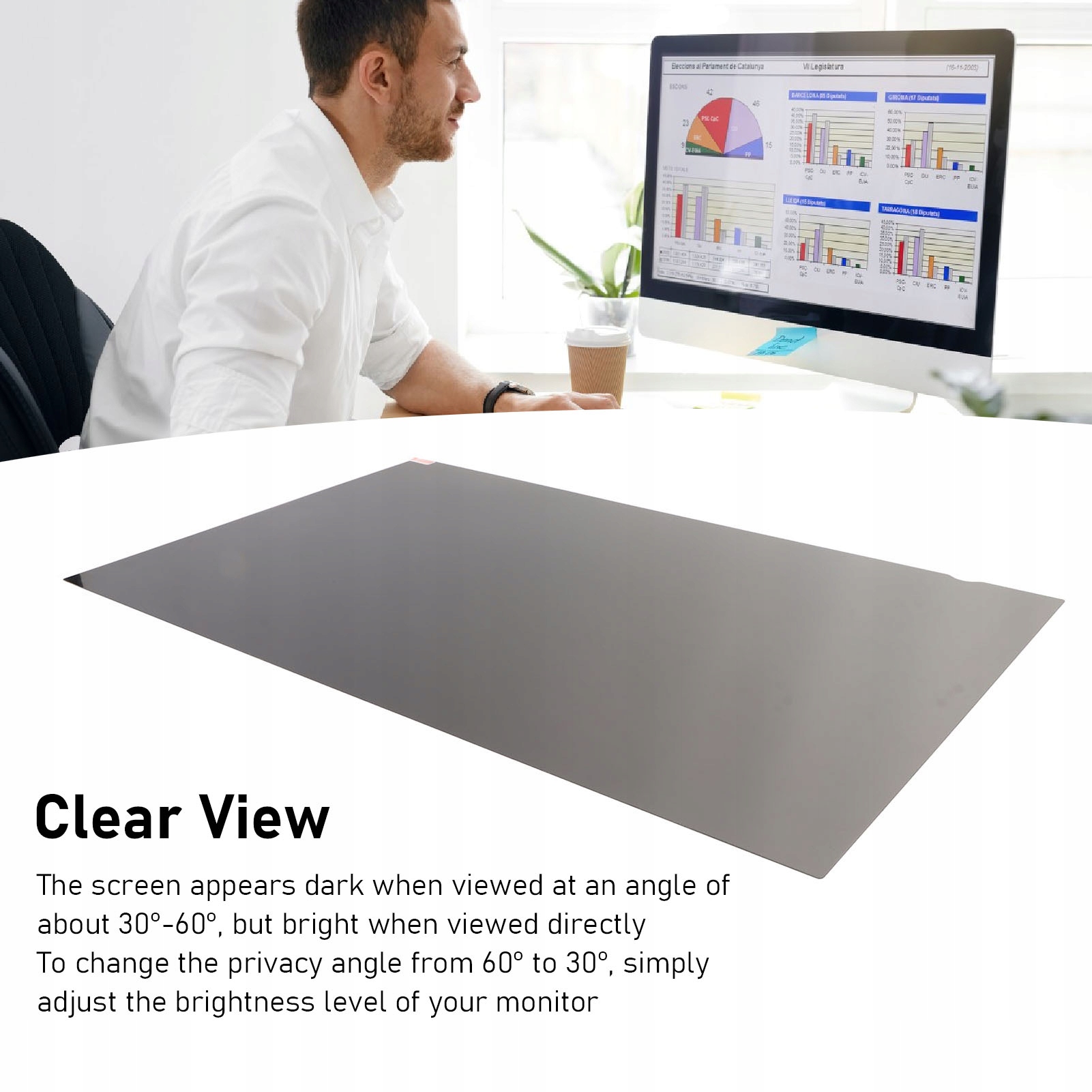 2. Clear View: 24-дюймовая защитная пленка для экрана компьютера делает экран темным при просмотре под определенным углом (приблизительно 30-60 градусов), но ярким при прямом просмотре. Чтобы изменить угол с 60 градусов на 30 градусов, просто отрегулируйте уровень яркости монитора.