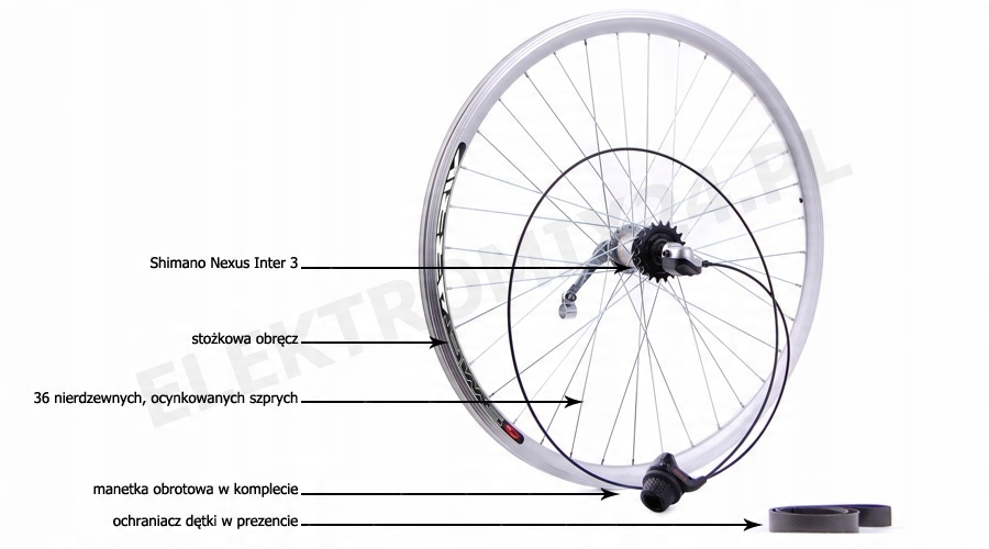 - Модель: колесо 24" с 3-х скоростной ступицей Shimano Nexus