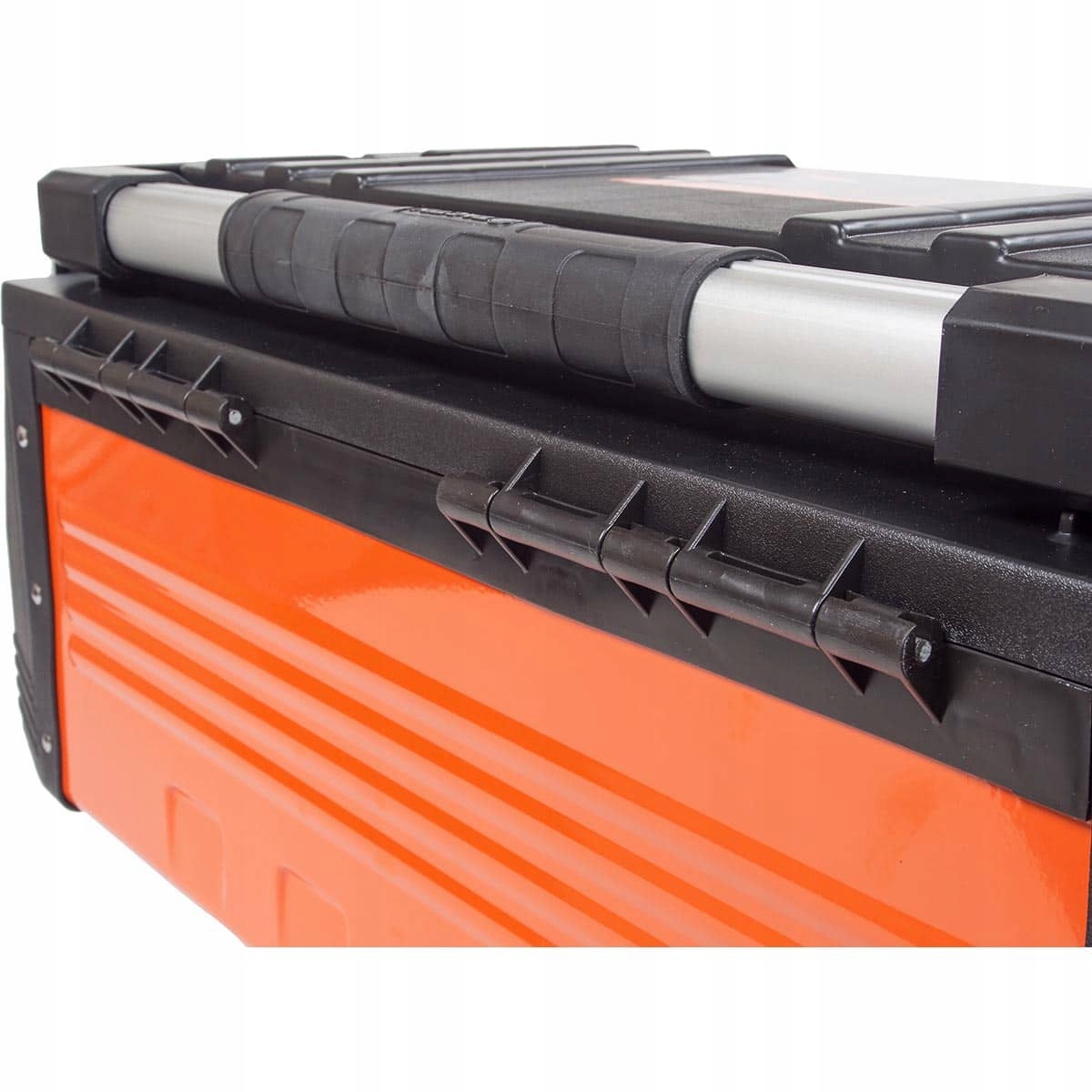 Высококачественный большой профессиональный ящик для инструментов с 2органайзерами. Благодаря корпусу из металла отличается высокой прочностью. Пластиковые элементы изготовлены из чистого пластика (Virgin Plastic), что повышает долговечность и устойчивость к трещинам и повреждениям.