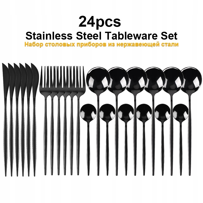 <ул>НАБОР СТОЛОВЫХ ПРИБОРОВ, 24 ПРЕДМЕТА, ЧЕРНАЯ НЕРЖАВЕЮЩАЯ СТАЛЬ