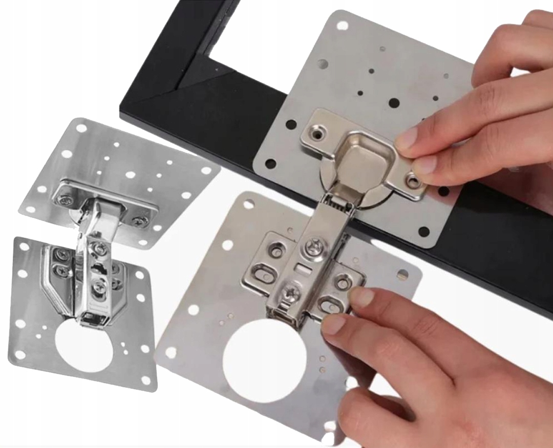 Комплект подходит для шкафов с правыми и левыми петлями, для кухни, ванной комнаты, офиса и мастерской. Благодаря 20 отверстиям в каждой пластине установка проста и гибка.