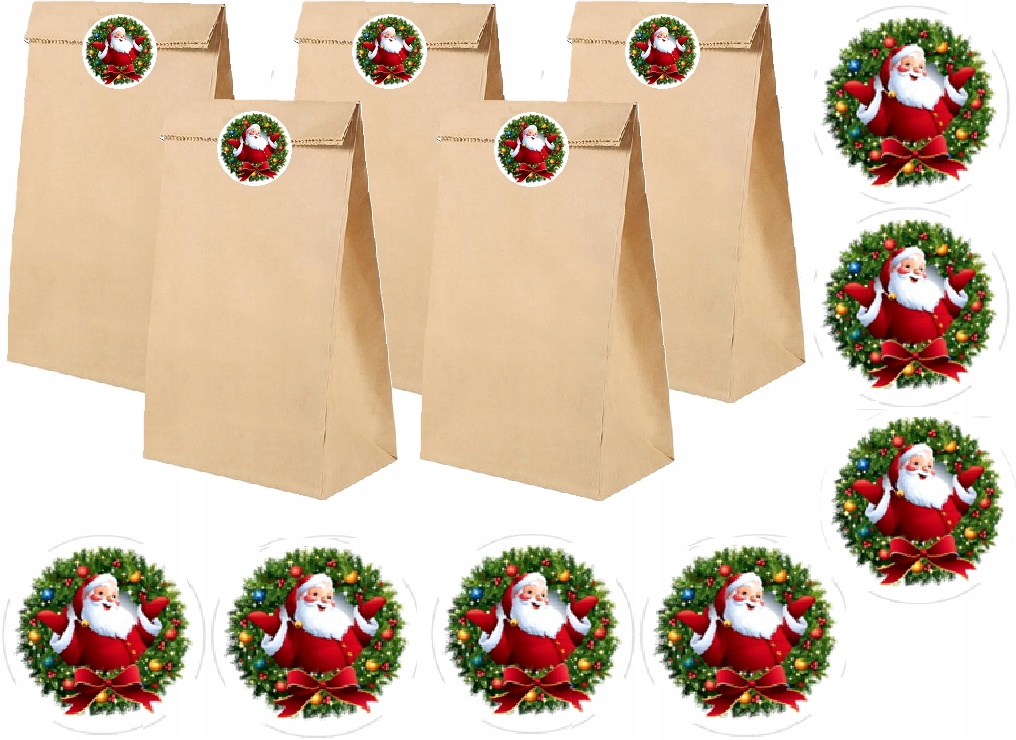 24 ШТ. РОЖДЕСТВЕНСКИЕ ПОДАРОЧНЫЕ БУМАЖНЫЕ ПАКЕТЫ ДЛЯ ДЕТСКОГО САДА + НАКЛЕЙКИ
