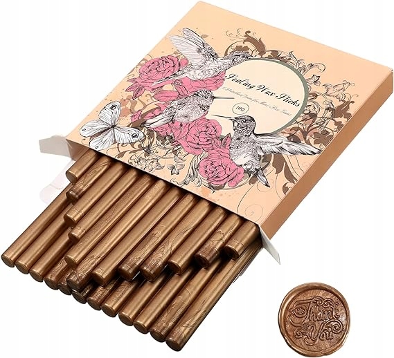 В наборе 24 кусочка коричневого воска (для пистолета), восковые палочки длиной около 10 см и диаметром около 7 мм. Изделие изготовлено из высококачественной смолы, компактной и гладкой, легко плавится и быстро сохнет. Удобно в использовании: расплавить воск для запечатывания букв можно клеевым пистолетом (не входит в комплект).