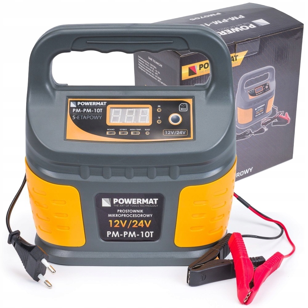 Высококачественный автоматический и точный микропроцессорный выпрямитель аккумулятора PowerMat PM-PM-10T отлично работает в профессиональных услугах и на семинарах, а также в домашних гаражах. Устройство может заряжаться с напряжением 12 В и 24 В.