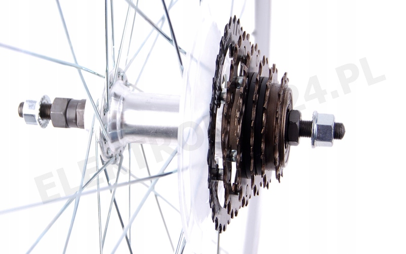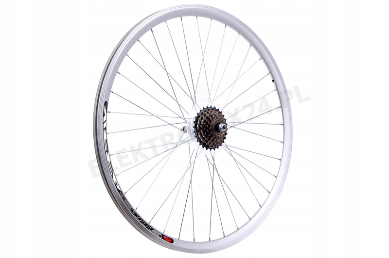 24-дюймовое усиленное заднее колесо с оригинальным механизмом свободного хода Shimano и сеть KMC. Конический обод изготовлен из алюминия и имеет 36 серебряных спиц. Ступица на шарикоподшипниках от известной компании JoyTech. В комплект также входит навинчивающаяся 6-скоростная обгонная муфта Shimano MF-TZ500 из высокопрочной стали и цепь KMC Z50 со 116 звеньями. Цепь совместима с этим набором.