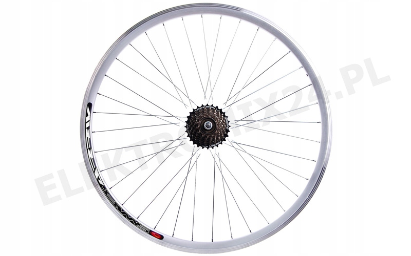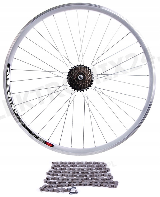 Усиленное заднее колесо 24 дюйма с оригинальным механизмом свободного хода Shimano и Цепь KMC.Конический обод из алюминия, имеет 36 спиц серебристого цвета.Ступица на шарикоподшипниках от известной, прославленной компании JoyTech.В комплект также входит навинчивающаяся 7-скоростная обгонная муфта Shimano MF-TZ500 из высокопрочная сталь и цепь KMC Z50 со 116 звеньями. Цепь совместима с этим набором.
