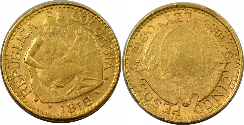 244F. КОЛУМБІЯ 5 ПЕСОС 1919 ДЕРЖАВНИЙ І - ЗОЛОТО.916