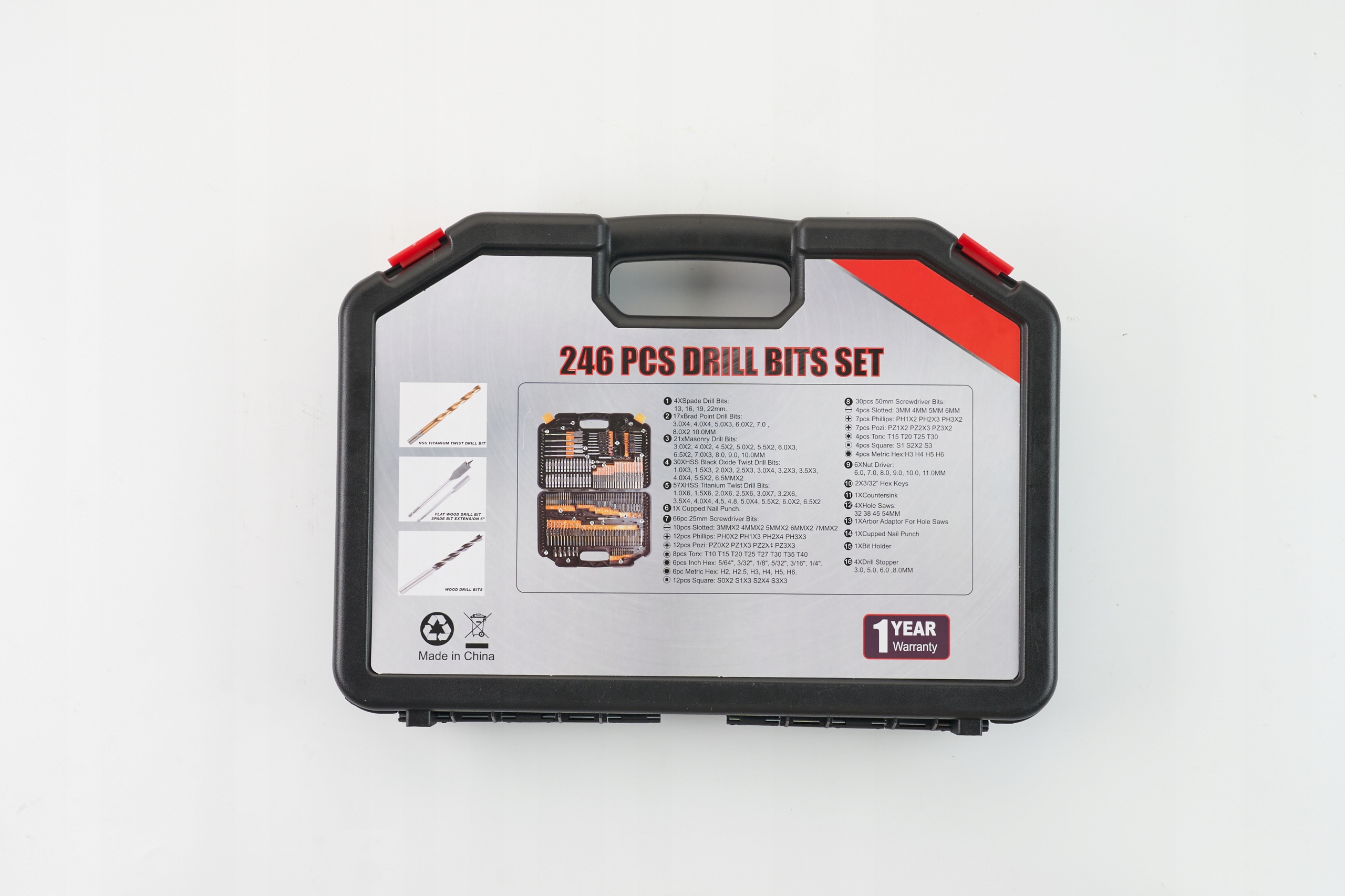【Хорошо организованный кейс】 - Наборы сверл из 246 предметов поставляются с портативным кейсом для хранения с организованной компоновкой. Внутри имеется губчатая подушка, предотвращающая выпадение и смешивание сверл. Красные этикетки с размерами сверл позволяют легко определить размер сверла.