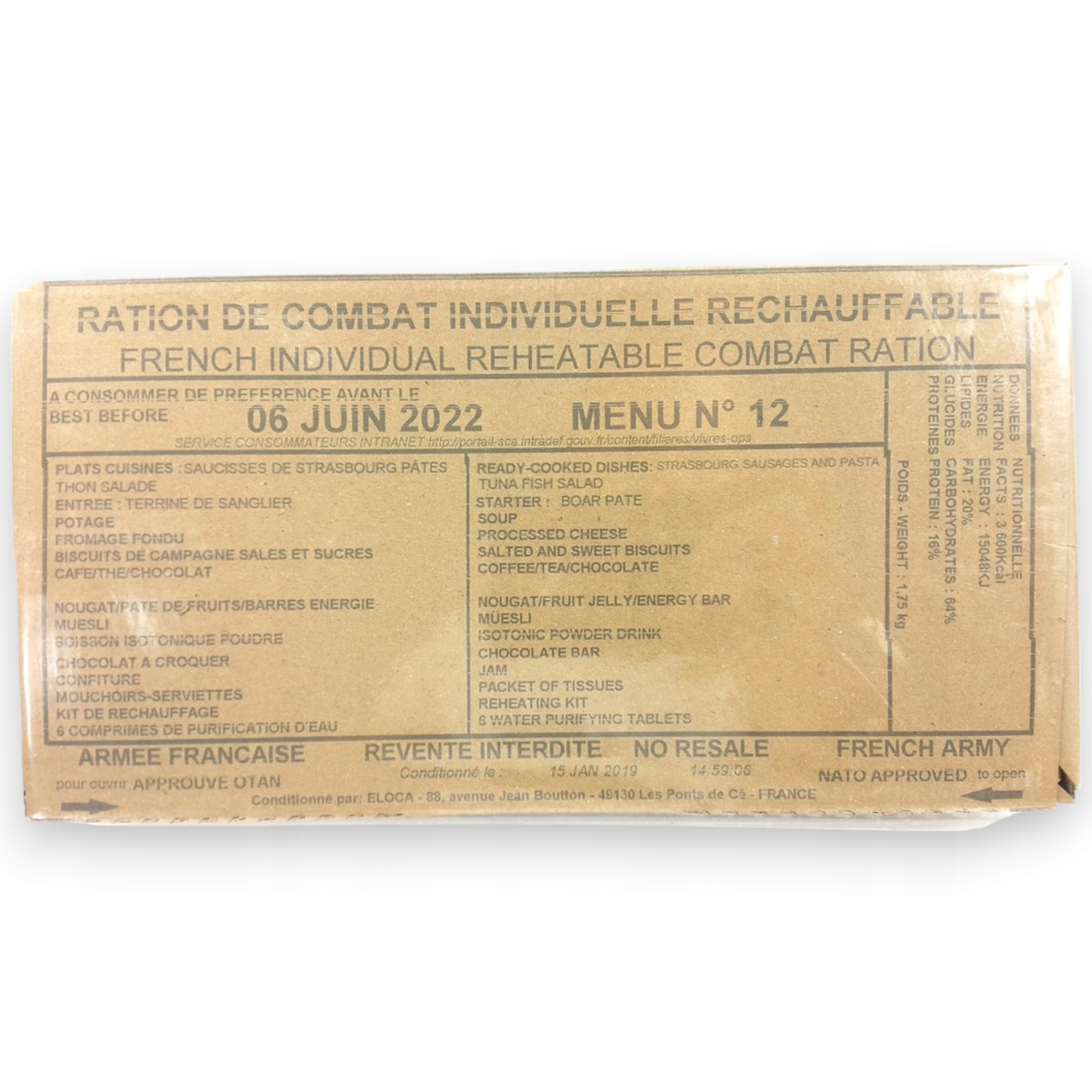 Оригинальный круглосуточный французский подогретый продовольственный рацион RCIR (Ration de Combat Individuelle Rechauffable).
