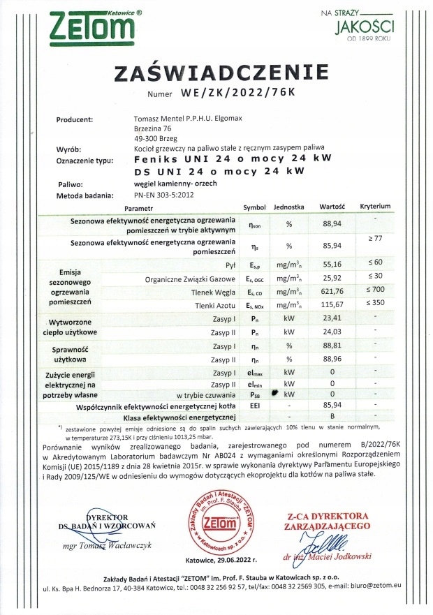 С сертификатами класса 5 (PE-EN 303-5: 2012) и экодизайна (2009/125/ WE) )