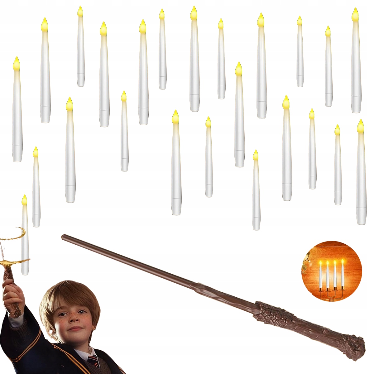 🌸Свечи с плавающей волшебной палочкой: эти конические свечи оснащены стильным пультом дистанционного управления в стиле волшебной палочки (требуется 1 батарейка типа ААА, НЕ входит в комплект). Просто нажмите кнопку – и вы сможете волшебным образом управлять всеми своими светодиодными свечами одновременно! Идеально подходят для создания уютной или мистической атмосферы.