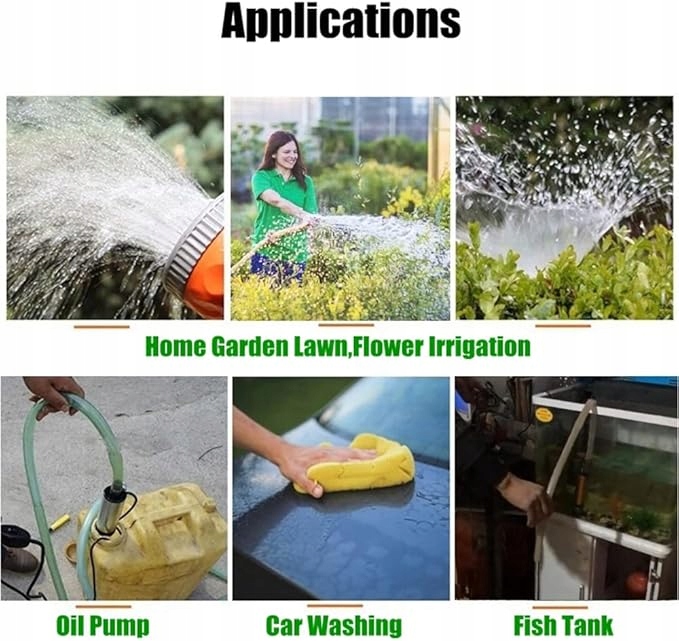 Подходит для перекачивания воды, дизельного топлива, керосина и других распространенных жидкостей. Его можно использовать в качестве водоообменника для домашнего аквариума и вспомогательного средства для подачи топлива в такие приводы, как строительные машины, экскаваторы, бульдозеры, бетономешалки, лифты, горнодобывающее оборудование и сельскохозяйственную технику, а также для полива участков или огородов. перекачка спирта на винодельнях.