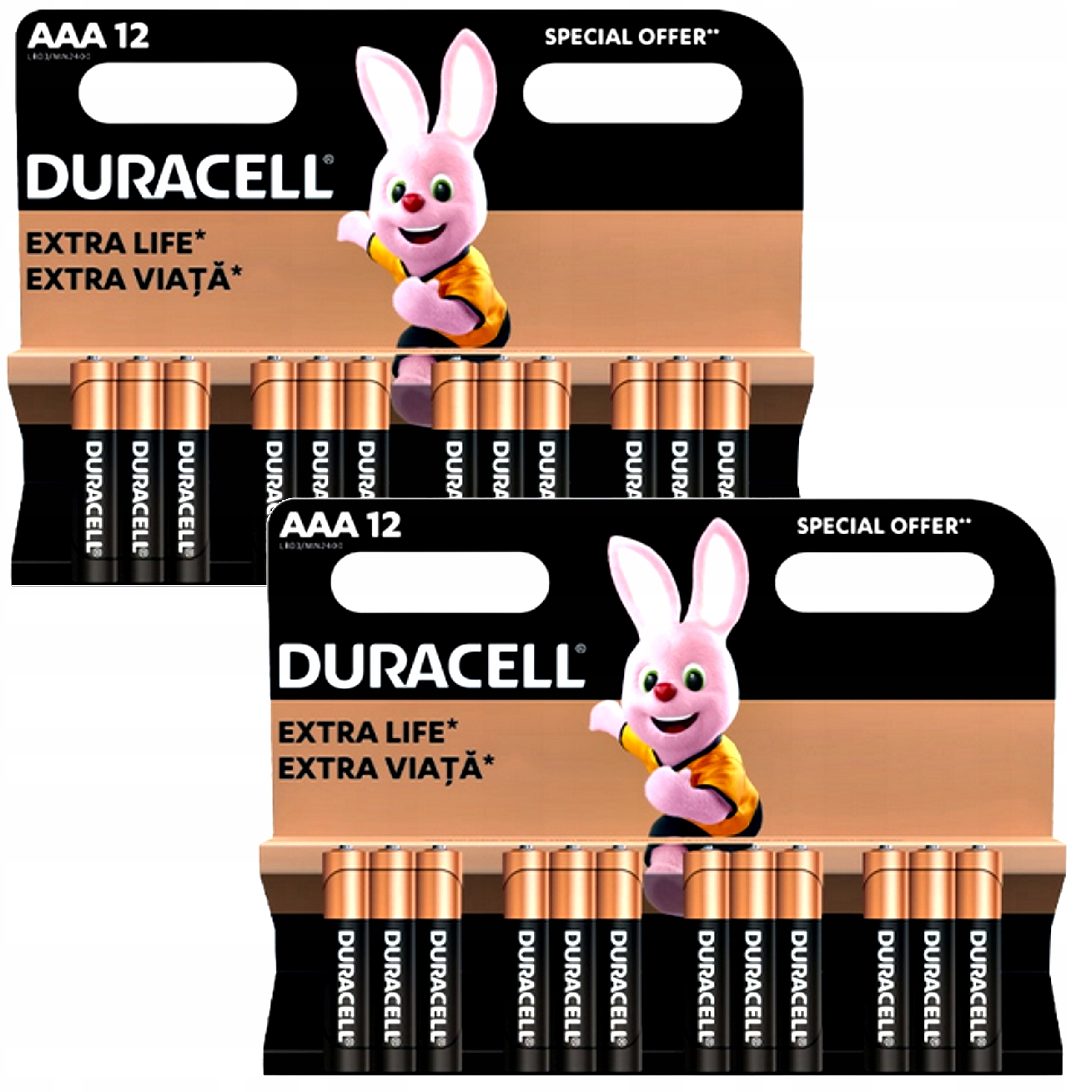- 24 оригинальных щелочных батарейки Duracell LR03 AAA – блистерные упаковки