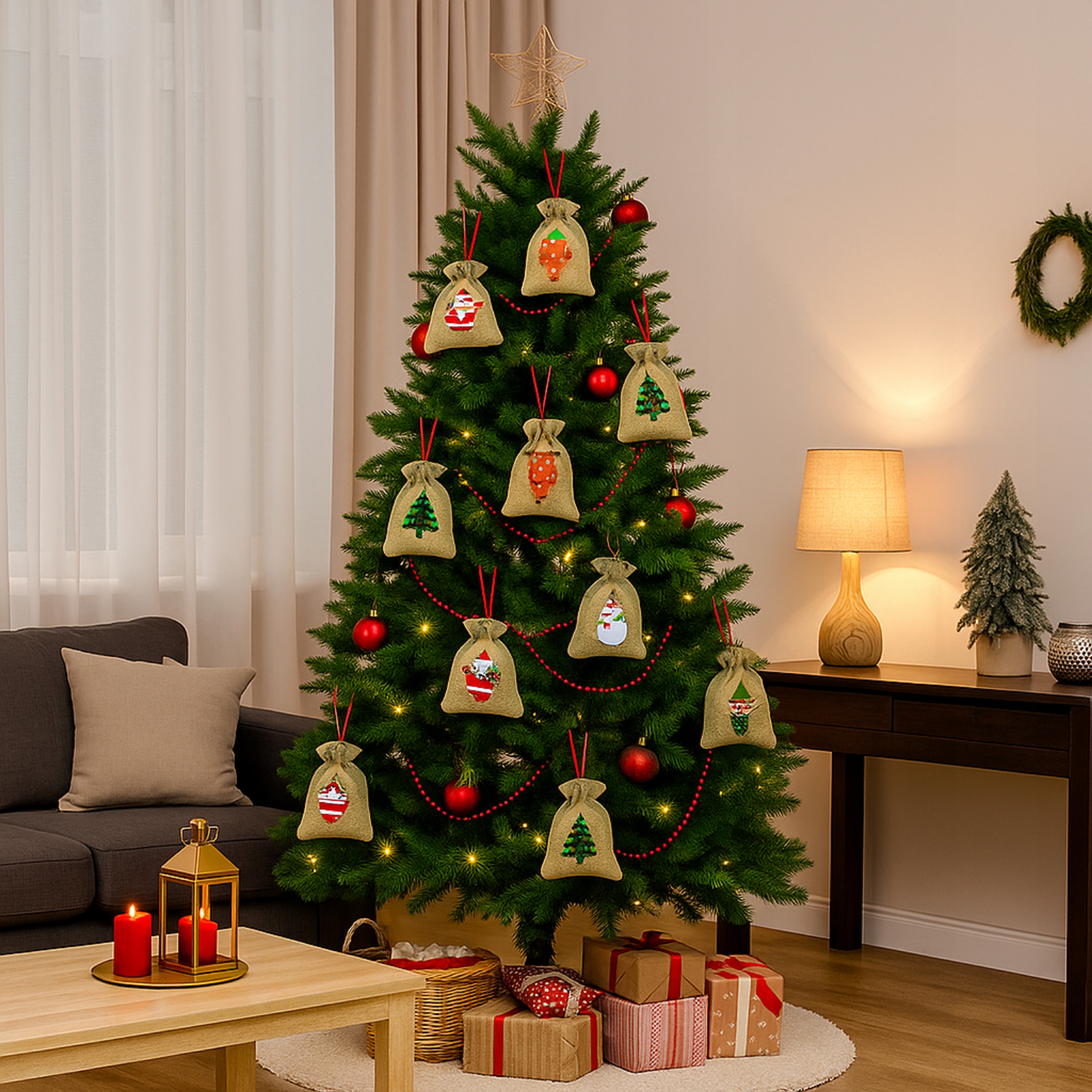 ДЖУТОВЫЕ РОЖДЕСТВЕНСКИЕ СУМКИ 10х14см АДВЕНТ-КАЛЕНДАРЬ
