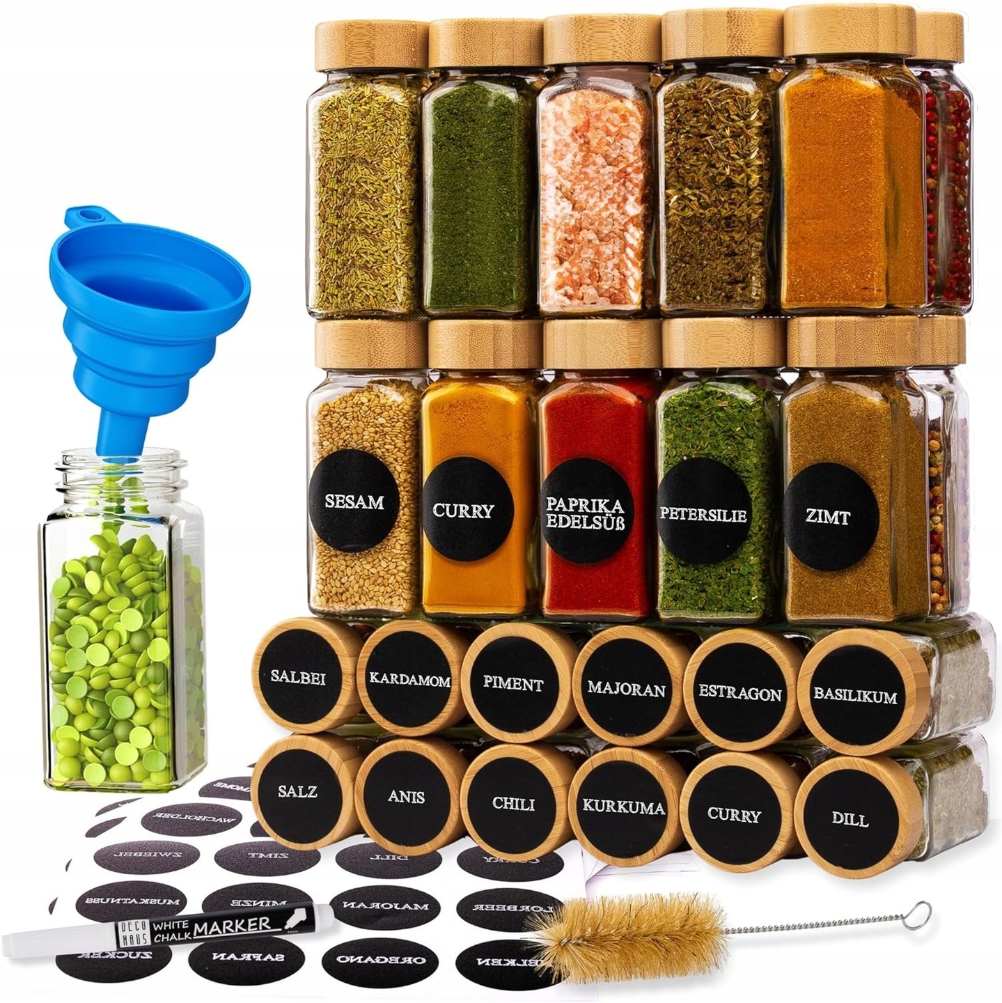 24 СТЕКЛЯННЫХ КОНТЕЙНЕРА ДЛЯ СПЕЦИЙ, ЭТИКЕТКИ, КУХОННАЯ ВОРОНКА, ОРГАНАЙЗЕР, СТЕКЛО