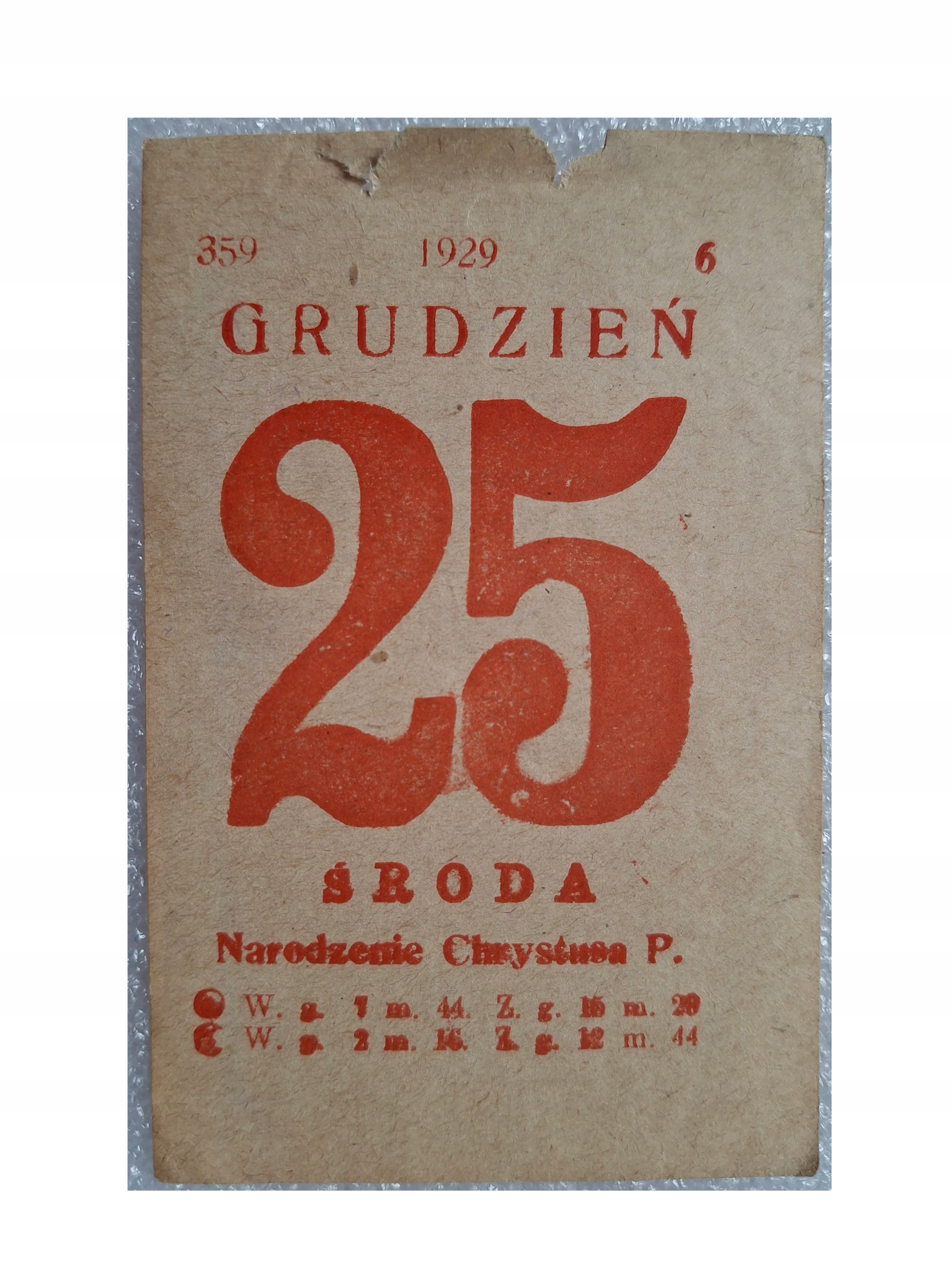 25 ГРУДНЯ 1929 РОКУ - КАЛЕНДАРНА КАРТКА