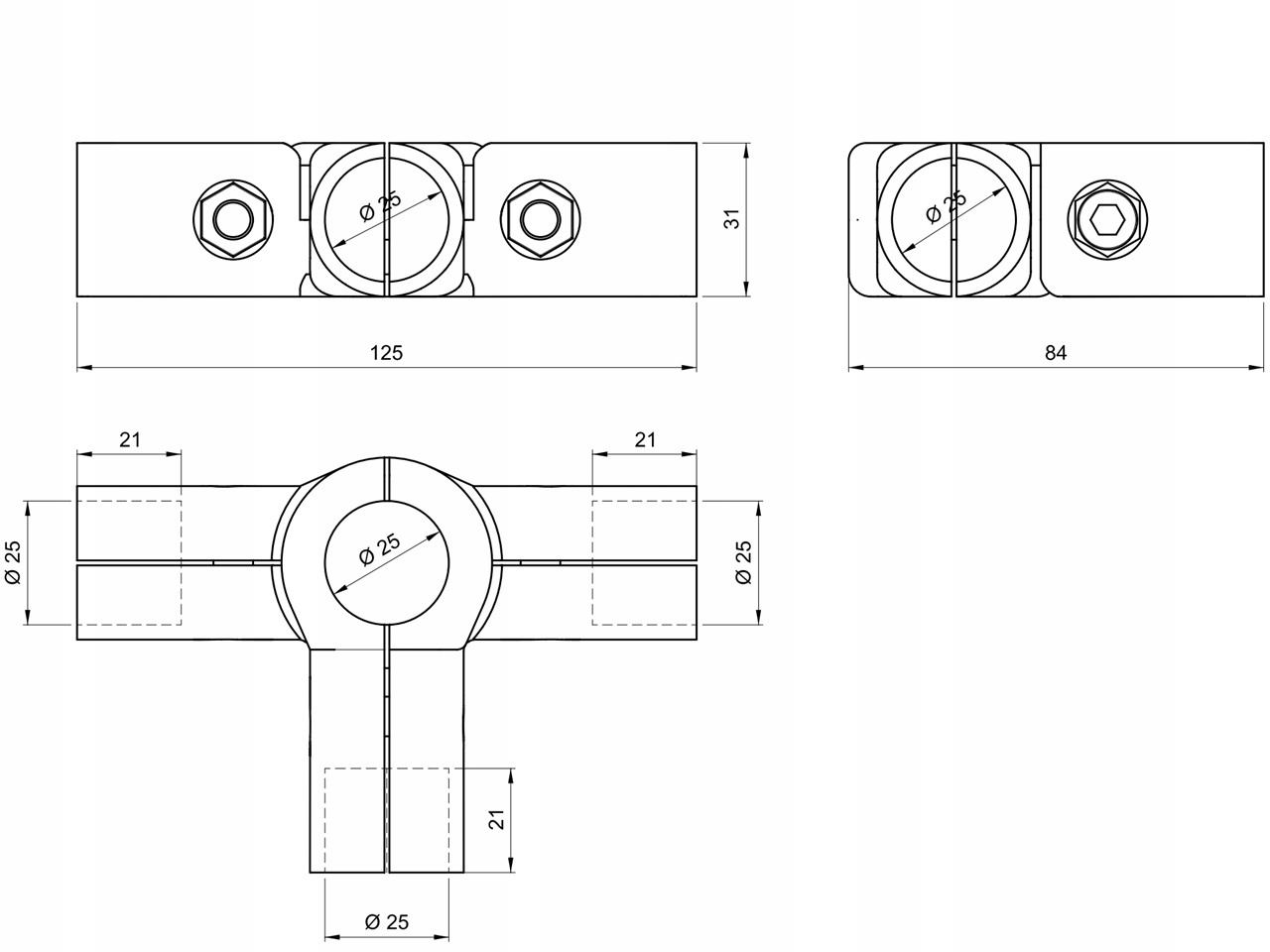 КРЕПЛЕНИЕ ТРУБНОЙ СИСТЕМЫ 25 ММ ТРЕХРУЧНОЕ СОЕДИНЕНИЕ