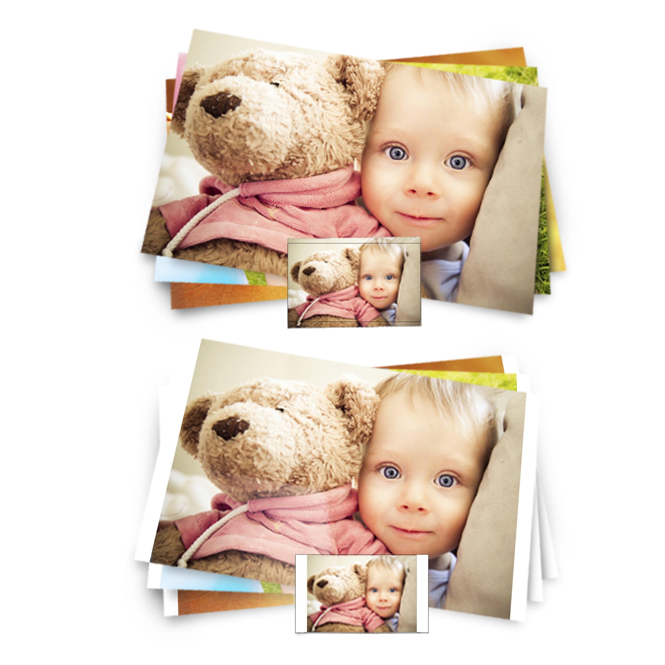 <ул>Для фотографий формата 10x15 пропорции сторон составляют 2:3. Если ваша фотография имеет другие пропорции, она будет обрезана до размера 10х15. Это означает, что часть фотографии, выходящая за пределы области формата, будет обрезана. Опция «обрезать рамку» гарантирует, что вся ваша фотография (без обрезки) будет включена в печать. Обратите внимание, что при нестандартных пропорциях фотографии по бокам фотографии могут появиться белые полосы.