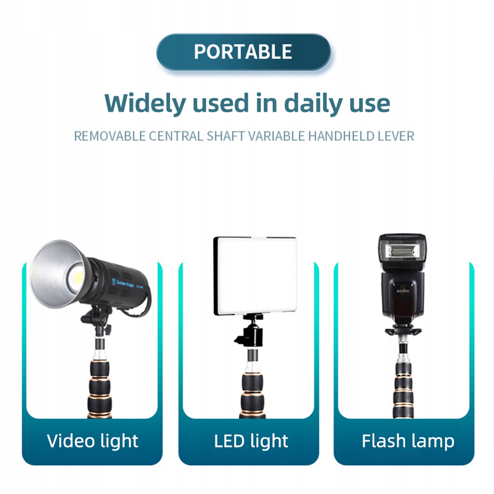 3. 【Универсальная совместимость】 оборудованная как винтовые адаптеры 1/4 дюйма, так и 3/8 дюйма, эта подставка для видео -света совместима с широким спектром фонарей пленки и видео, подставки для света и настройки освещения.