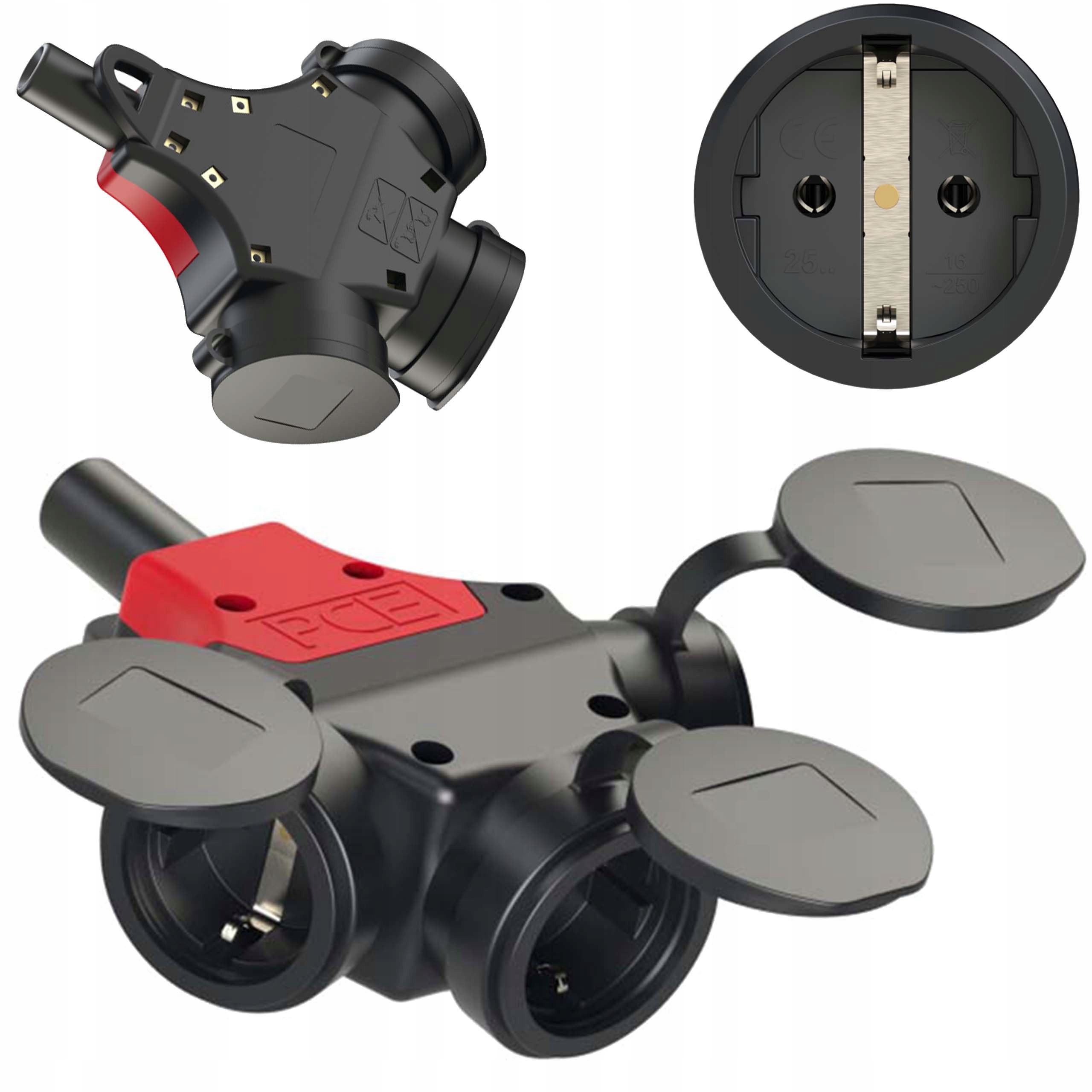 - Однофазный резиновый разветвитель 10/16А 2 P+Z
