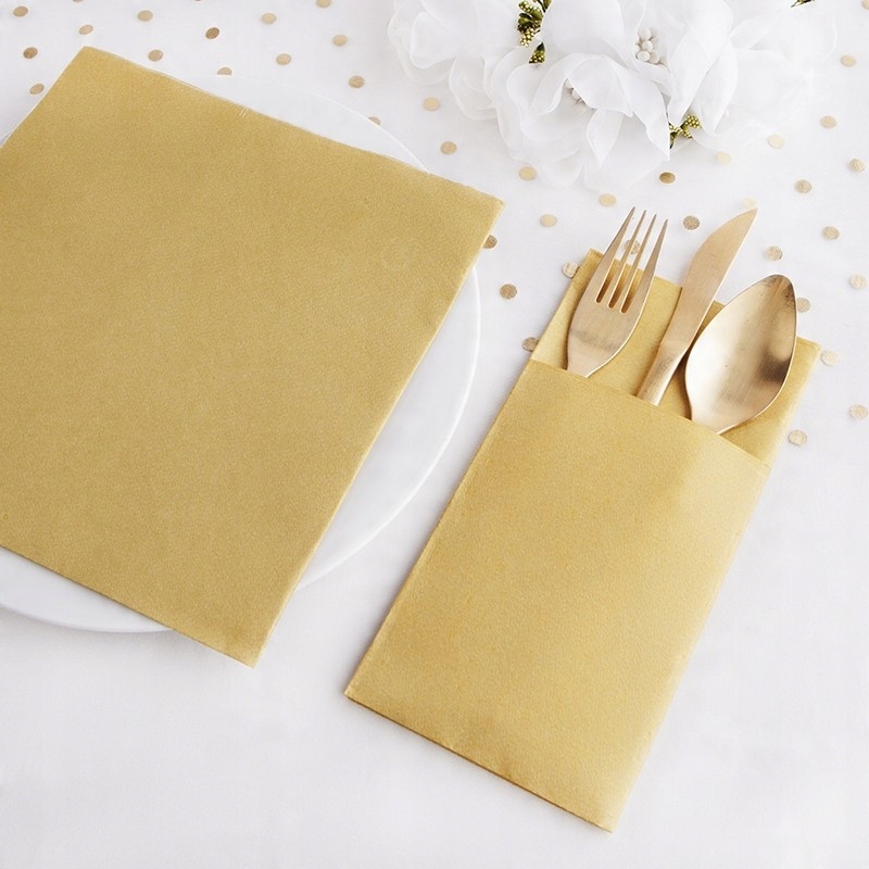 - Карманы для столовых приборов из нетканого материала золотого цвета.