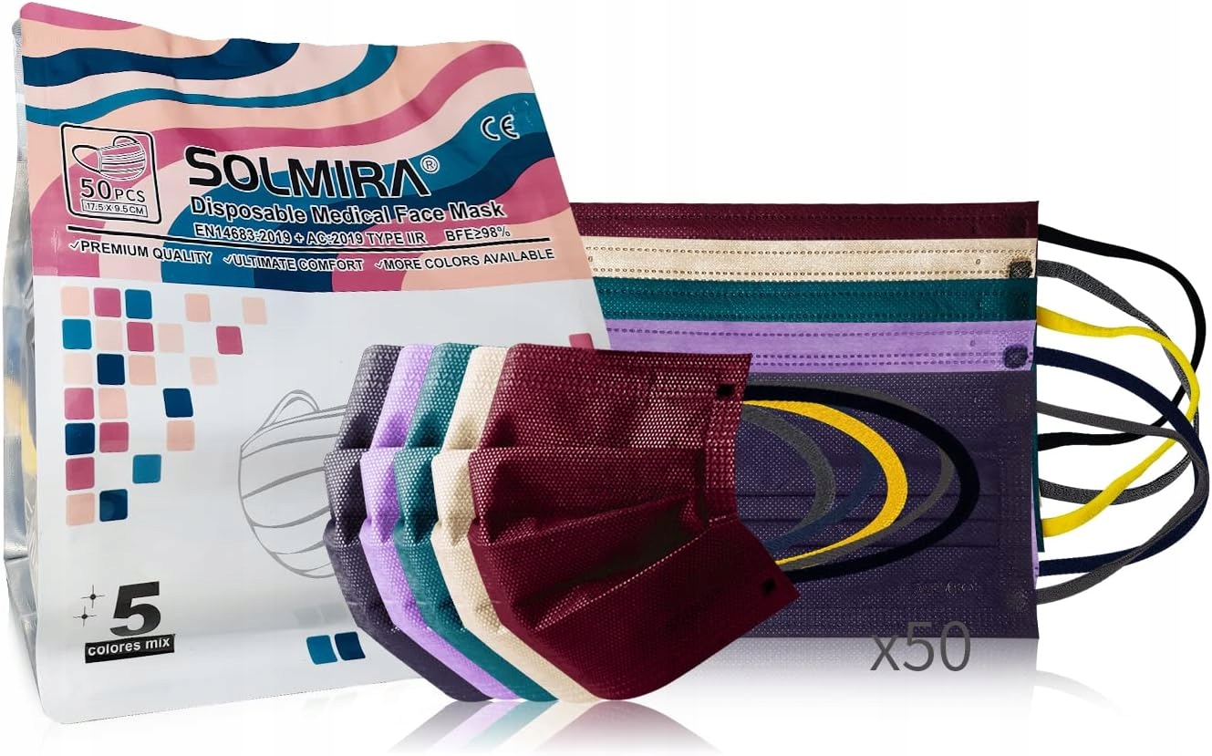 25x МАСКА ОДНОРАЗОВА 3-ШАРОВА TYPE IIR КОЛЬОРОВА