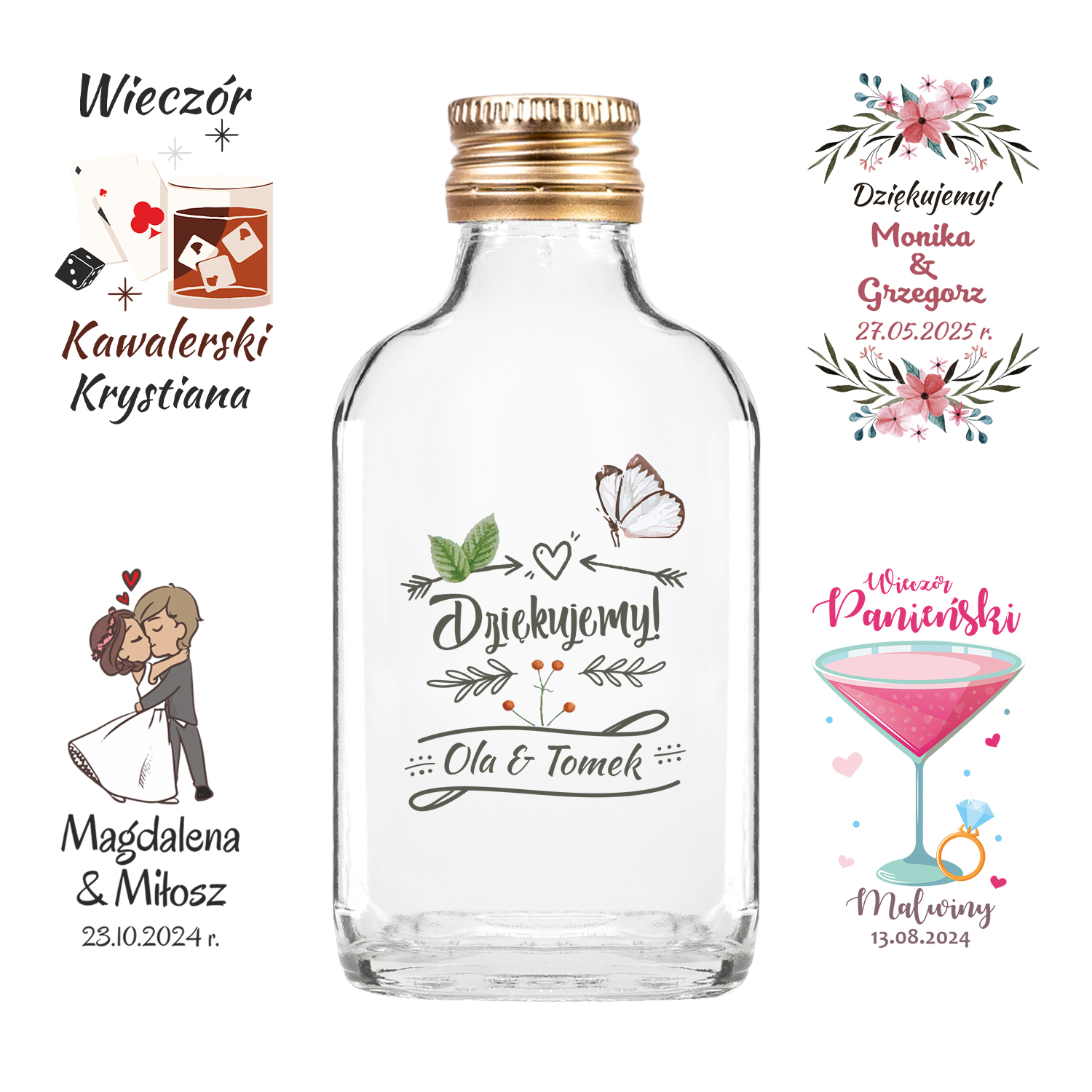 ПЛЯШЕЧКИ ДЛЯ САМОГОНУ ВЕСІЛЛЯ ДЕНЬ НАРОДЖЕННЯ 100 МЛ ПОДЯКА З ПРИНТОМ 25ШТ
