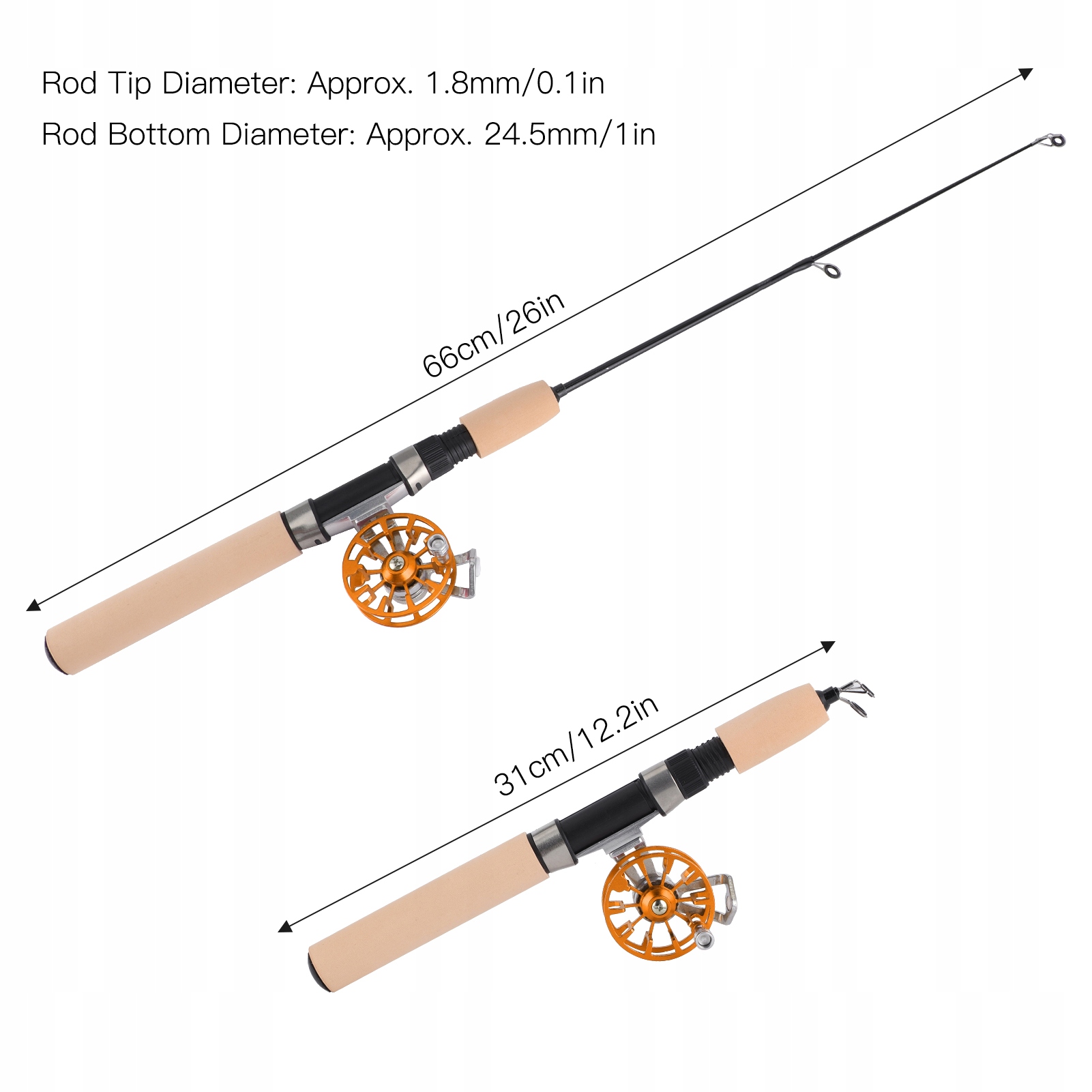 26-дюймовая телескопическая удочка с набором катушек, портативная зимняя FS