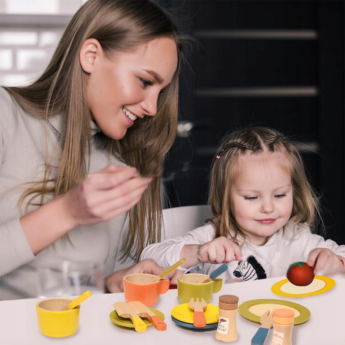 【Игра-головоломка】Набор деревянных столовых приборов — отличная обучающая игрушка, которая позволяет детям участвовать в различных ролевых играх, которые способствуют социальному взаимодействию и позволяют детям в увлекательной игровой форме развивать творческое мышление и воображение.