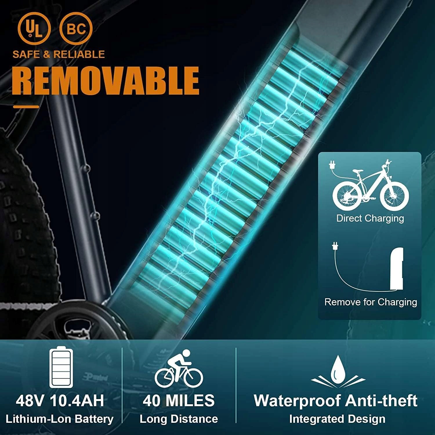 Долговечный аккумулятор 48 В, 10,4 Ач. Исследуйте дальше с аккумулятором высокой емкости, который обеспечит вам дополнительный запас хода и захватывающую езду по бездорожью.