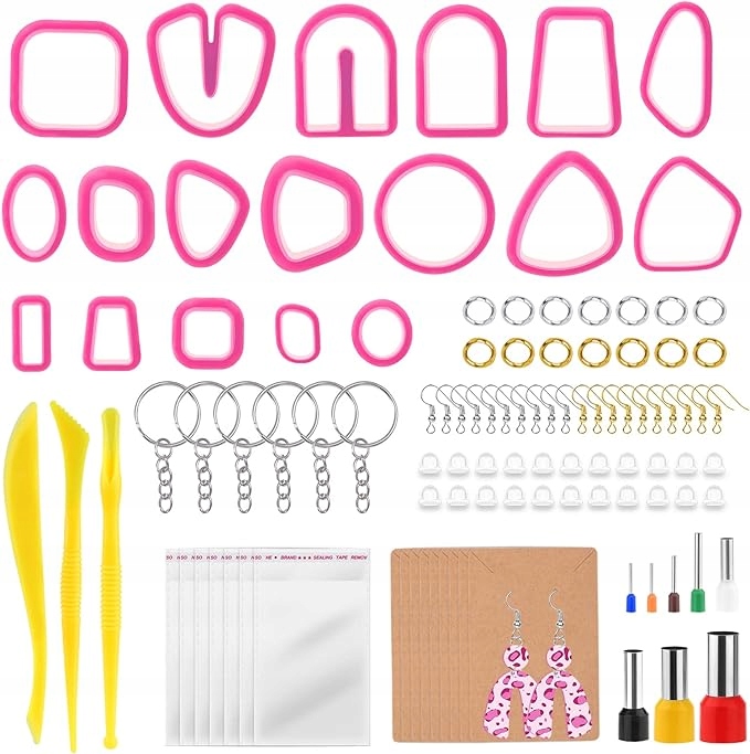 - В набор входят необходимые материалы:глина, фурнитура, формочки для вырезания, заготовки для украшений. Кроме того, вы найдете декоративную упаковку для готовых сережек – свою продукцию можно подарить близким!