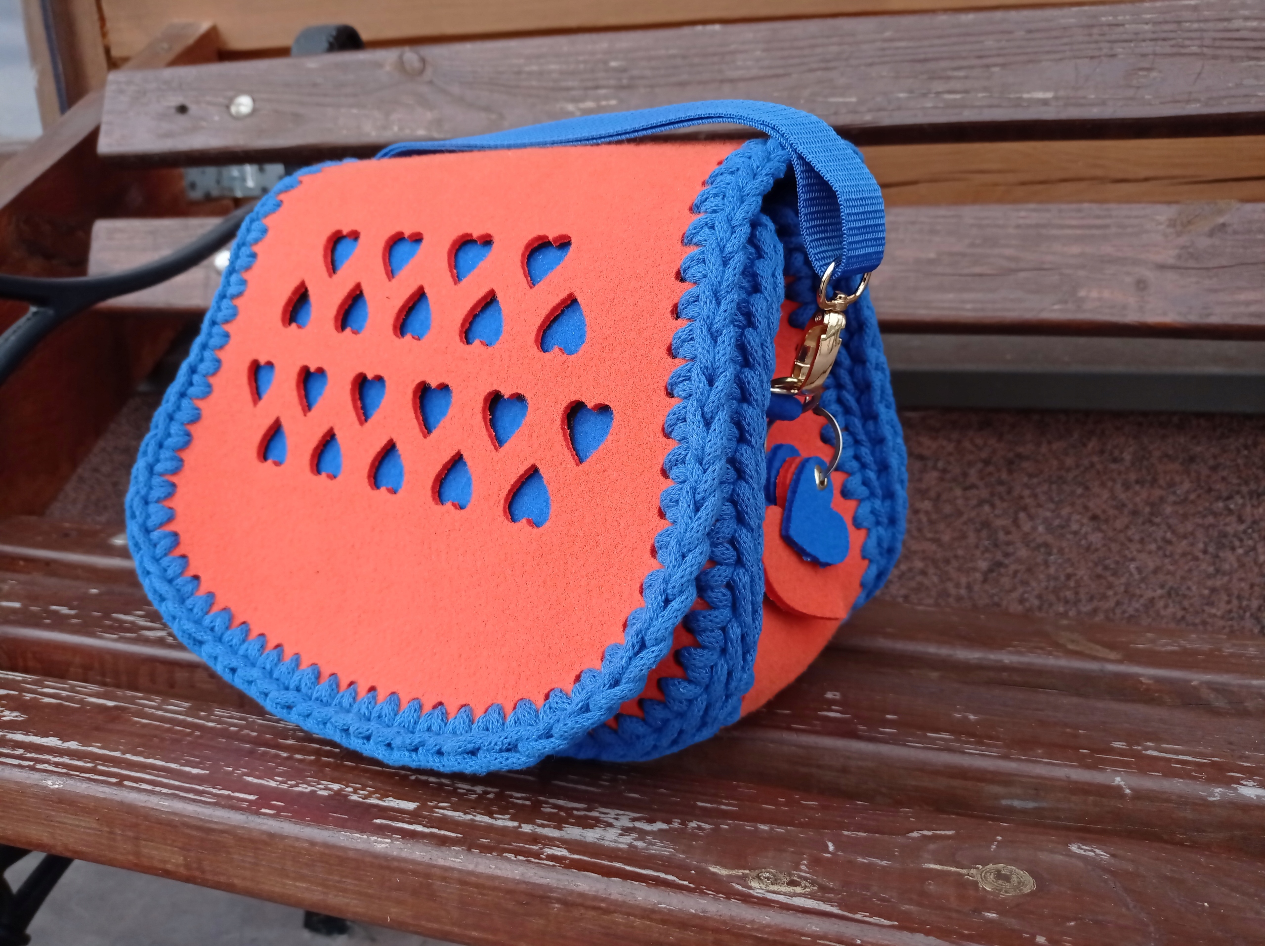 26x25см BAG FLAP Основа для в’язання гачком з повсті HEARTS BLACK