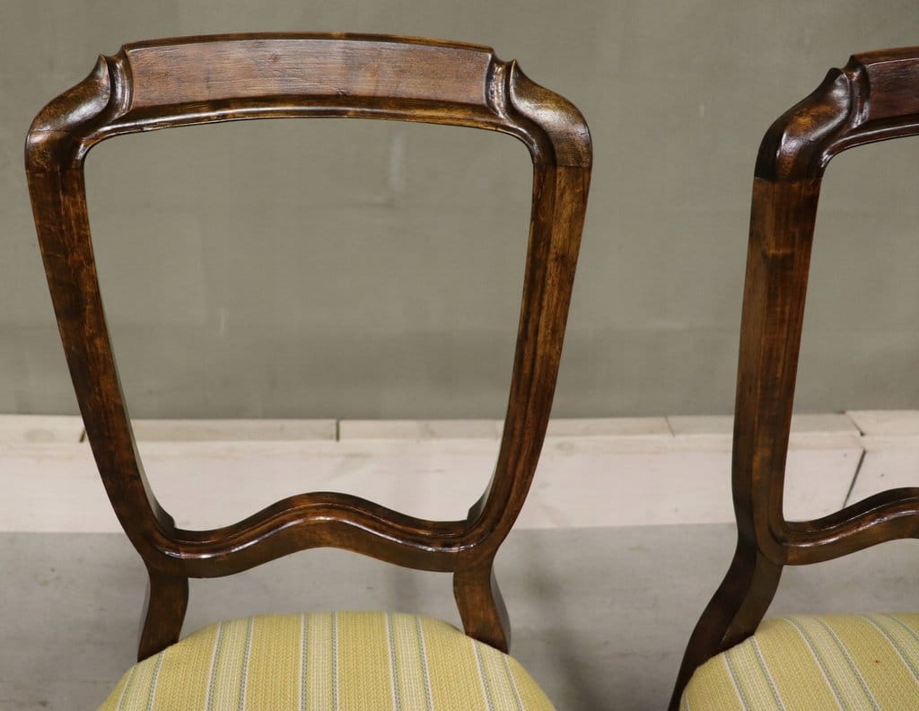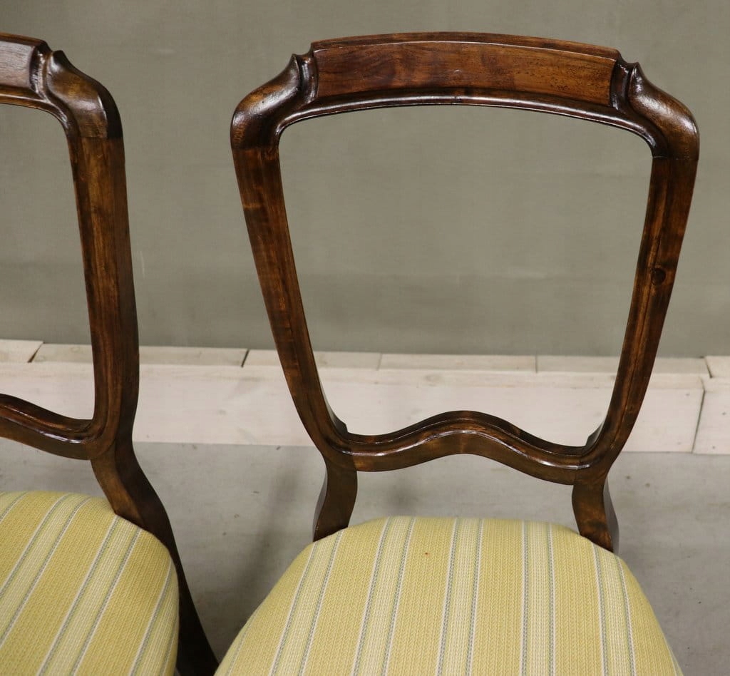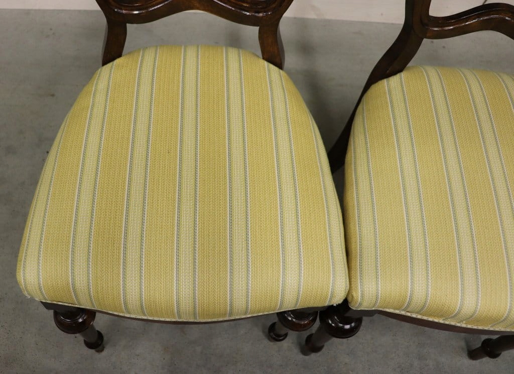 Состояние представлено фотографиями - видимыми небольшими следами использования - задняя часть одного из стульев требует склеивания - видимого на фотографии.
