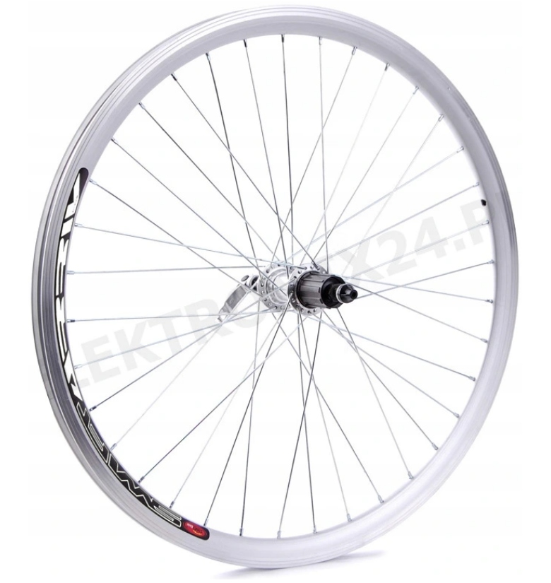 Заднее колесо для велосипеда размером 28" от Stars Circle. Легкий, двухкамерный обод из алюминия, имеет 36 спиц из нержавеющей стали. Колесо оборудовано с герметичной ступицей JoyTech с хомутом, который входит в комплект, и на шарикоподшипниках черного цвета, адаптированной под дисковый тормоз и кассета, которая скользит по барабану ступицы.