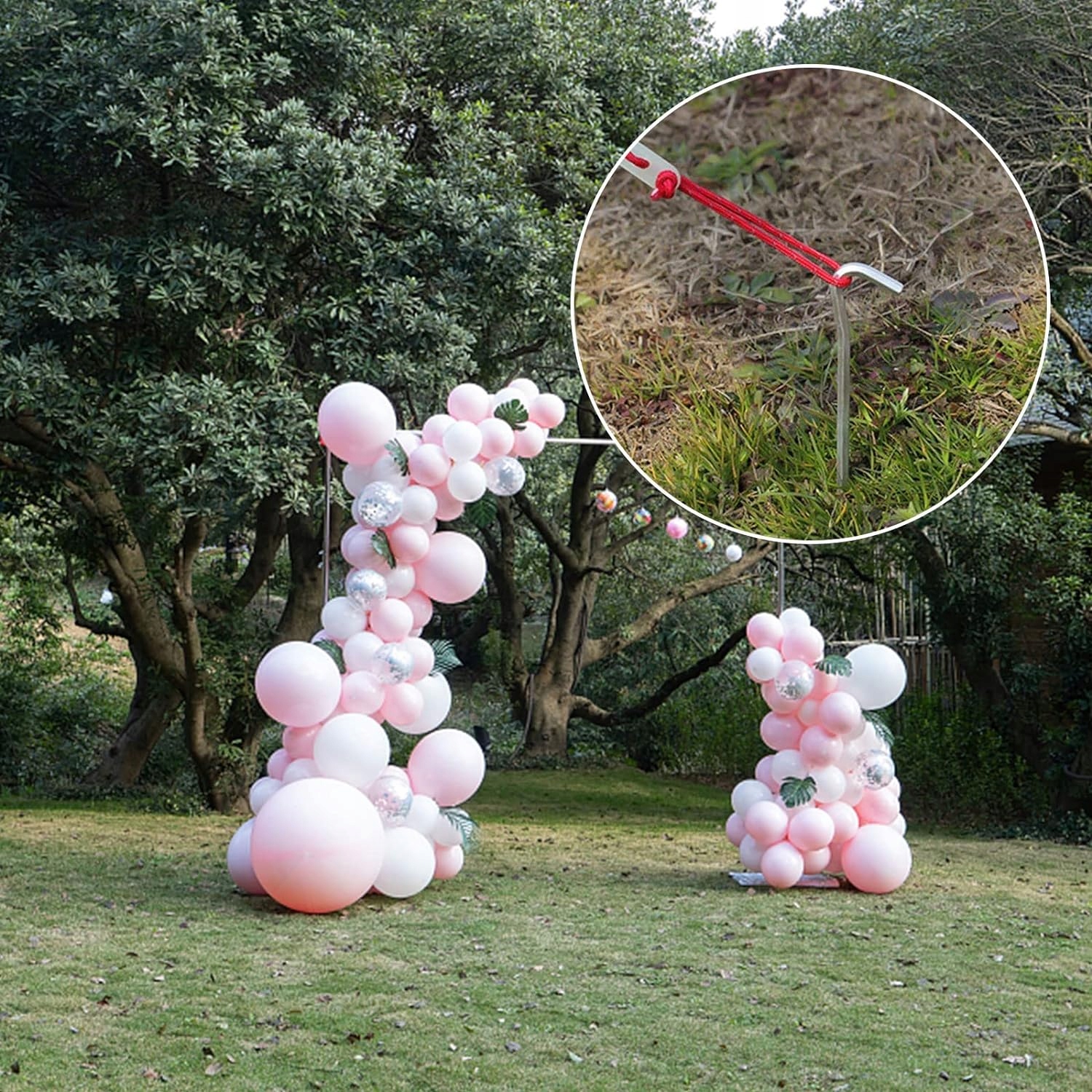 👍👍👍 [Шестиугольный дизайн] Верхняя часть булавка оснащена нескользящим крючком в форме вопросительного знака, который более устойчив, чем круглый. Шестиугольная конструкция не только облегчает вбивание в землю, но и увеличивает несущую поверхность.