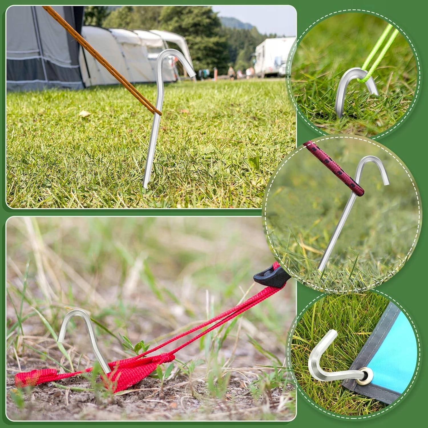 ⛺⛺⛺ [Широкий спектр применения] Колышки для палаток можно используется для крепления походных палаток, беседок, футбольных сеток, противомоскитных сеток, решеток, навесов и ветрозащитных курток. Они очень подходят для кемпинга, пеших прогулок или других видов активного отдыха.