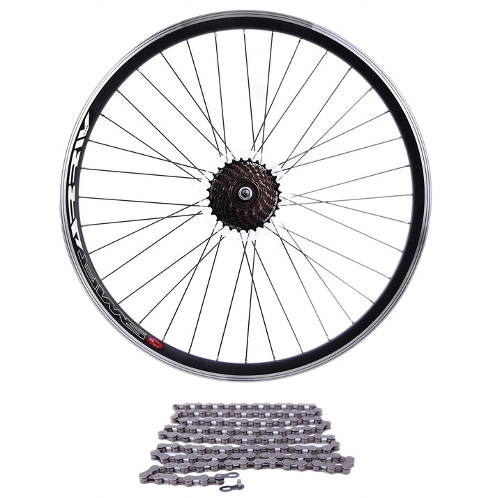 Усиленное заднее колесо 28 дюймов с оригинальным механизмом свободного хода Shimano и Цепь KMC.Конический обод из алюминия, имеет 36 черных спиц.Ступица на шарикоподшипниках от известной, авторитетной компании JoyTech.В комплект также входит навинчивающаяся 7-скоростная обгонная муфта Shimano MF-TZ500, изготовленная из высокопрочная сталь и цепь KMC Z50 со 116 звеньями. Цепь совместима с этим набором.