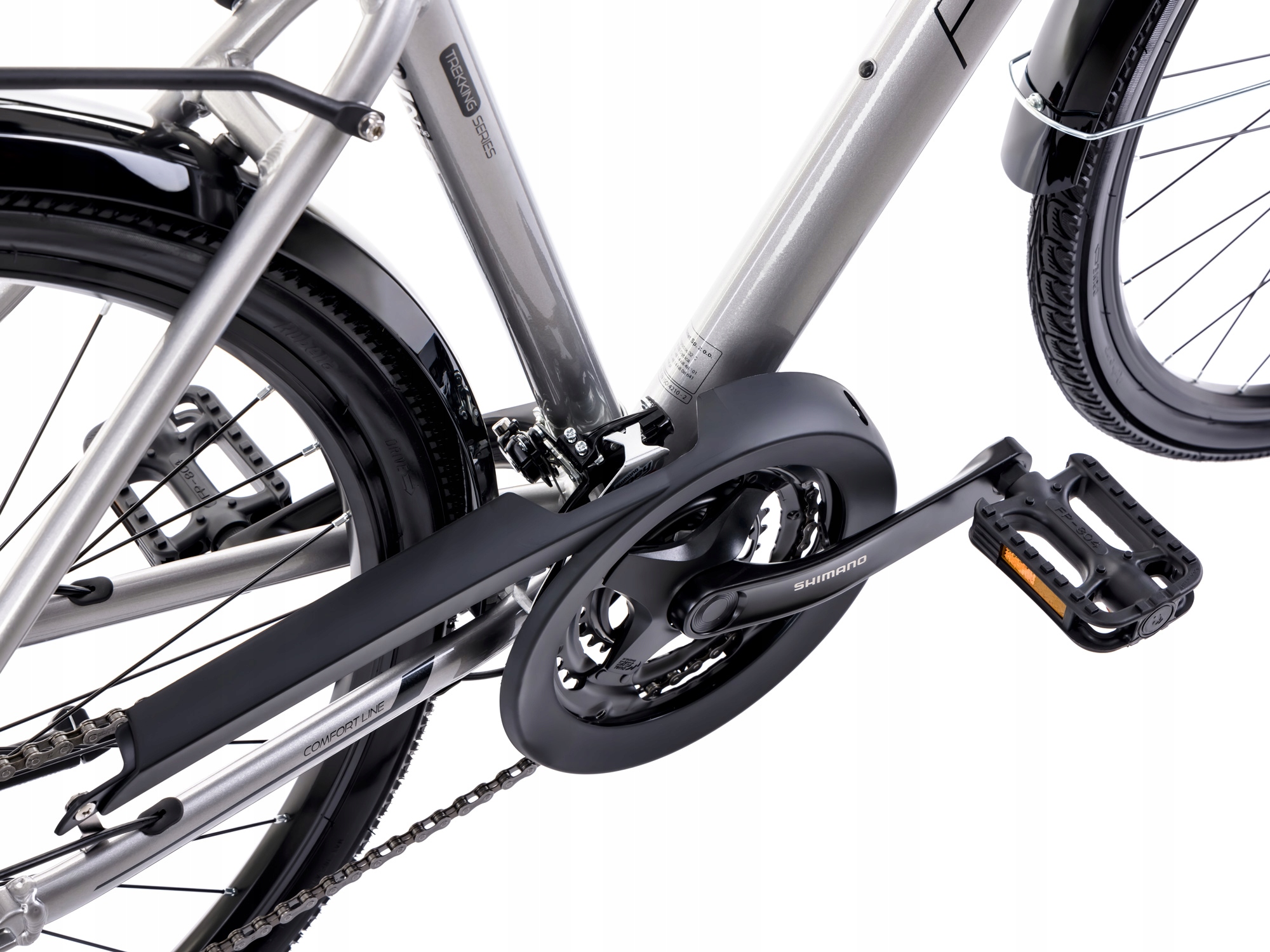 В Wagant 2 есть все, чем должен быть оснащен полноценный мужской треккинговый велосипед. Он имеет обширное оснащение, которое будет полезно как для повседневного использования, так и во время дальнейших поездок. Прочный задний багажник вмещает много вещей, а комплект брызговиков и чехол на привод сделают осеннюю или зимнюю погоду нам не помехой. Модель имеет передний амортизатор, который эффективно поглощает любые неровности. Привод Shimano с 21 передачей будет работать не только там, где местность становится немного сложнее. Вагант 2 уже имеет дисковые тормоза, которые повышают нашу безопасность, особенно при поездках с багажом. На велосипеде использованы 28-дюймовые колеса, которые легко разгоняются и прекрасно справляются со всеми трудностями бездорожья. Регулируемый мостик – это большое удобство, позволяющее легко установить удобное положение. Модель доступна в трех размерах корпуса и двух цветовых вариантах. ЗАДНИЙ АМОРТИЗАТОР: — ПЕРЕДНИЙ ТОРМОЗ: Диск ЗАДНИЙ ТОРМОЗ: Диск КАССЕТА/СВОБОДНАЯ СКОРОСТЬ: Shimano MF-TZ500 14–28 зуб., 7 скоростей. РУЛЬ: Сталь 610 мм. ЦВЕТ: серый ДЕТАЛЬНЫЙ ЦВЕТ: графитовый серый. ЦВЕТА: серый; графит КОЛЕСА, РАМА: 28 / алюминий 6061 ПЕРЕДНИЙ ФОНАРЬ: Работает от аккумулятора ЗАДНИЙ ФОНАРЬ: Работает от аккумулятора ПЕРЕДНИЕ ПЕРЕКЛЮЧАТЕЛИ: Shimano ST-EF500, 3 скорости. ЗАДНИЕ ПЕРЕКЛЮЧАТЕЛИ: Shimano ST-EF500, 7 скоростей. КРЕНАТОЧНЫЙ МЕХАНИЗМ: Shimano FC-TY301 48/38/28T 170 мм МОСТ РУЛЯ: MTS-C297 90 мм/180 мм ПРИВОД: 21 передача. ДИСКИ: Алюминиевые двухкамерные. ШИНЫ: Mitas Hook 700x40C ПЕДАЛИ: FP-804 ПЕРЕДНЯЯ СТУПИЦА: Алюминий ЗАДНЯЯ СТУПИЦА: Алюминий ПЕРЕДНИЙ ПЕРЕКЛЮЧАТЕЛЬ: Shimano FD-TY510 ЗАДНИЙ ПЕРЕКЛЮЧАТЕЛЬ: Shimano Altus RD-M310 ГОД ПРОИЗВОДСТВА: 2024 РАЗМЕР: 21 РАЗМЕР КОЛЕСА: 28 СЕДЛО: Selle Royal 5094 СИДЕНЬЕ: Алюминий 30,9 мм / 350 мм ПЕРЕДНИЙ ТОРМОЗНОЙ ДИСК: 160 мм ЗАДНИЙ ТОРМОЗНОЙ ДИСК: 160 мм ПОЛЬЗОВАТЕЛЬ: Мужчина ВЕС: 17,0 кг ВЕРСИЯ: Базовая ВИЛКА: Подвеска ВЫСОТА: 170-180 РОСТ ДО: 180 ВЫСОТА ОТ: 170