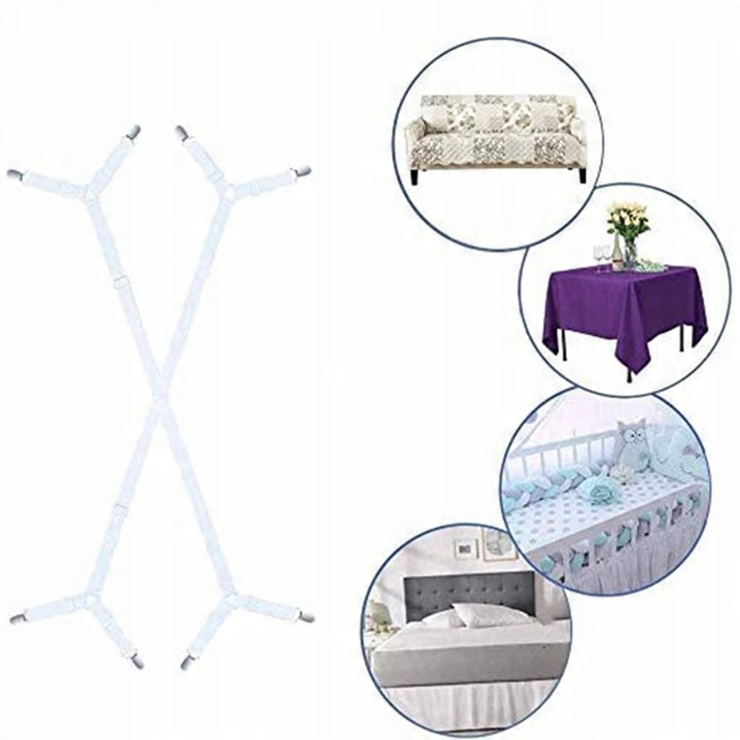✅️ - Прочность: высококачественные эластичные ленты обеспечивают прочную и длительную фиксацию. Высококачественные хромированные зажимы долговечны и не ломаются. Встроенные пластиковые зубцы прочно удерживают простыню, не повреждая ткань.