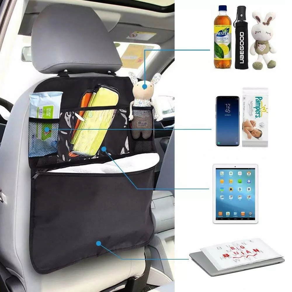 2×АВТОМОБИЛЬНЫЙ ОРГАНАЙЗЕР ДЛЯ ЗАЩИТЫ АВТОКРЕСЛА, ЧЕРНЫЙ ДЛЯ ПЛАНШЕТА