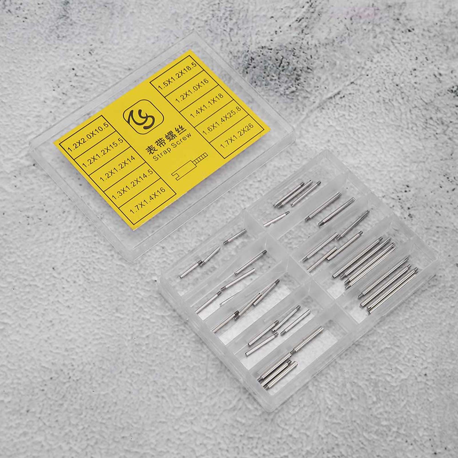 2 коробки, штифты для ремешка для часов, набор винтов для ремешка, инструменты для ремонта часов, аксессуары с коробкой для хранения, разные размеры