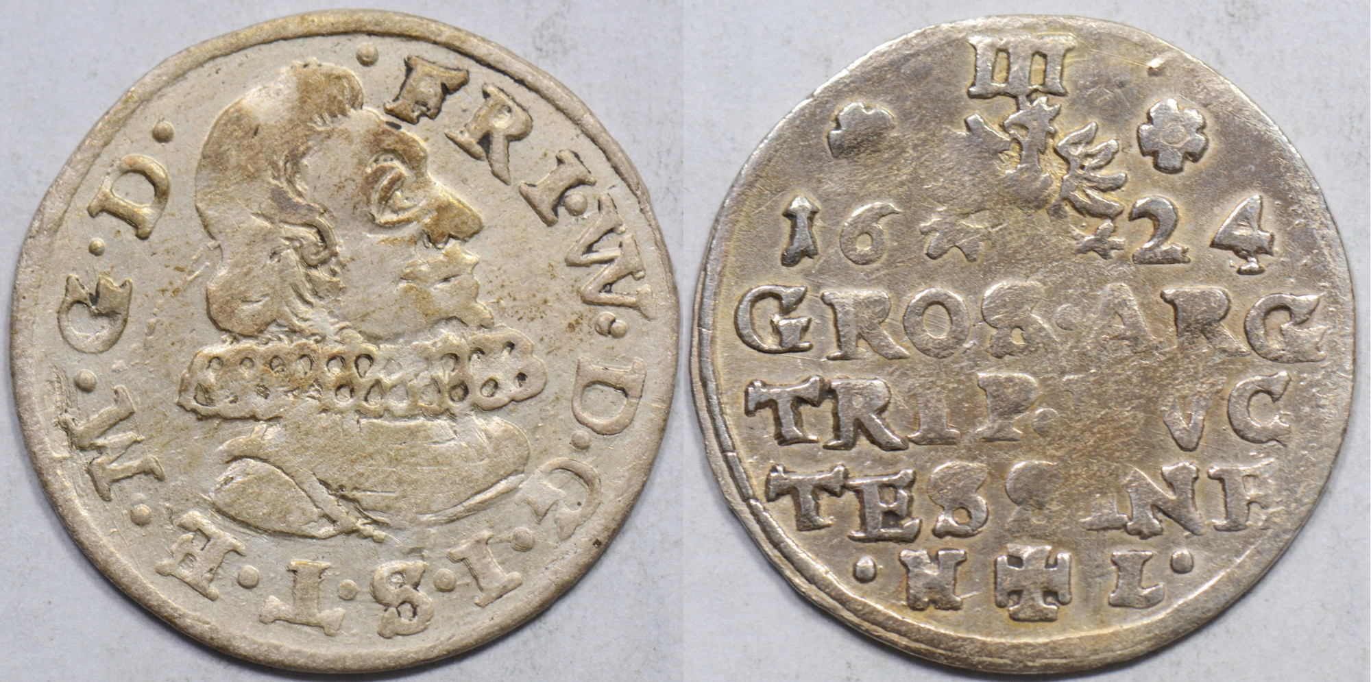2EJ. ŚLĄSK CIESZYN TROJAK 1624 HL FRYDERYK WILHELM R8 РІДКІСНІСТЬ!!! 28/10