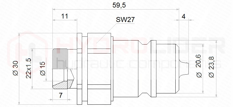 Диаметр резьбы М22х1,5. измерено штангенциркулем: