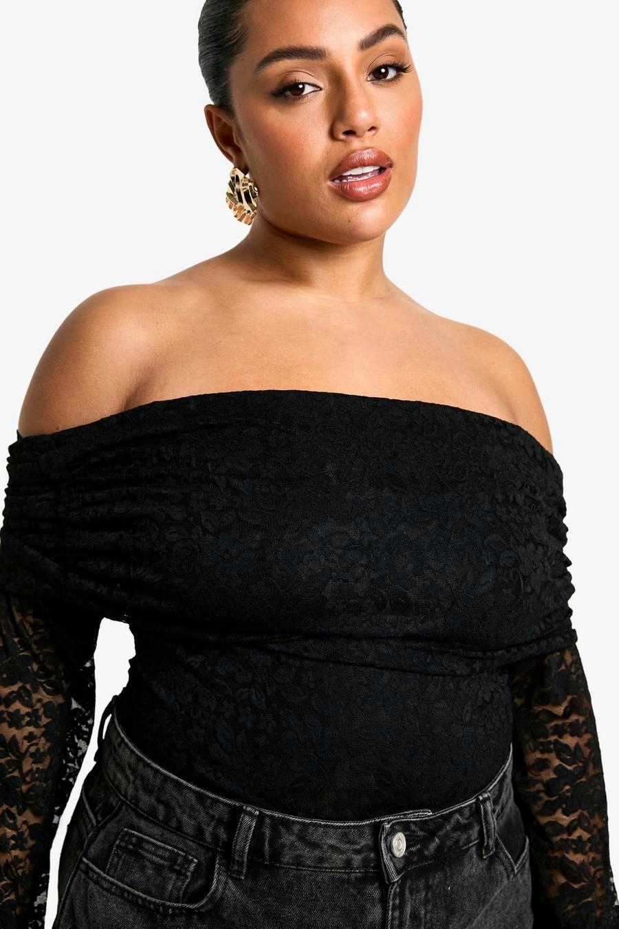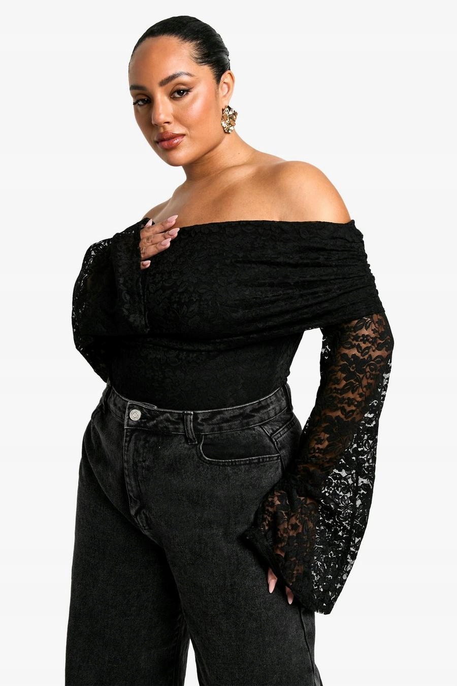 2H6A16 БОДУ BOOHOO PLUS ЧЕРНОЕ КРУЖЕВНОЕ БАРДО A02 XXL