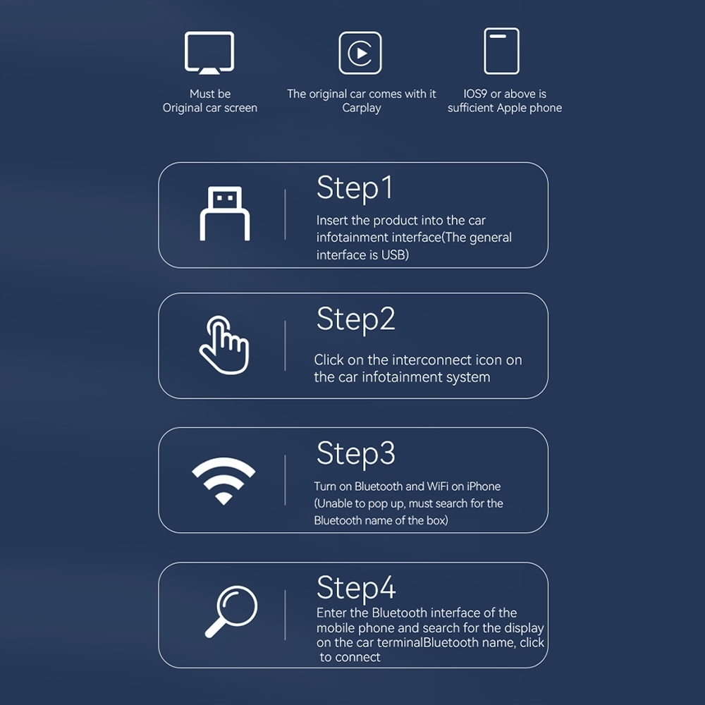 подходит для: oem Car Radio с Wired to Wireless Function. Он поддерживает только оригинальное радио CarPlay Car или Android Auto Wired System. Если это не оригинальное автомобильное радио в машине, не покупайте !!!!!! USB)