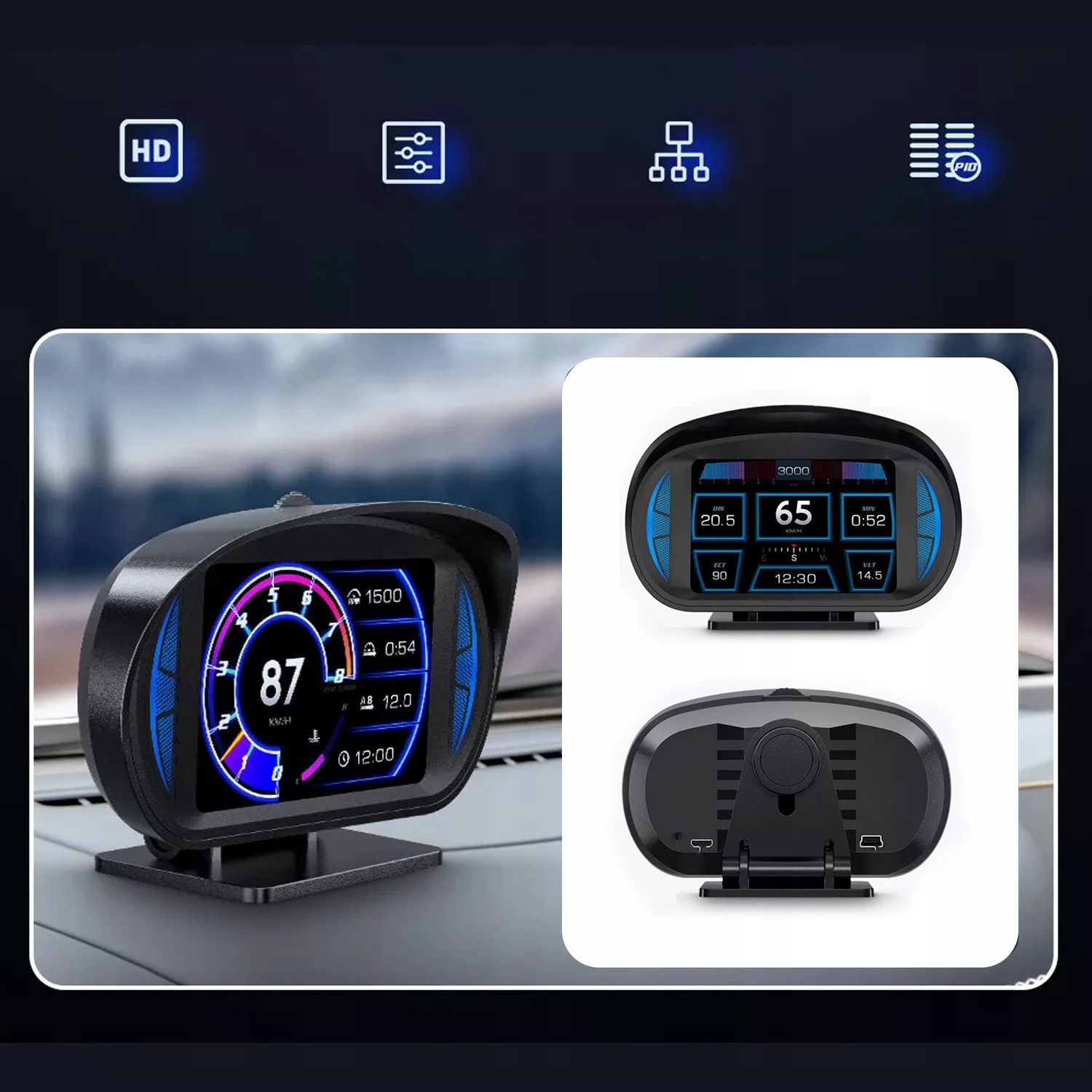 - Функция: obd+gps+12+тематические интерфейсы показателя наклона+функция тревоги+освещение среды